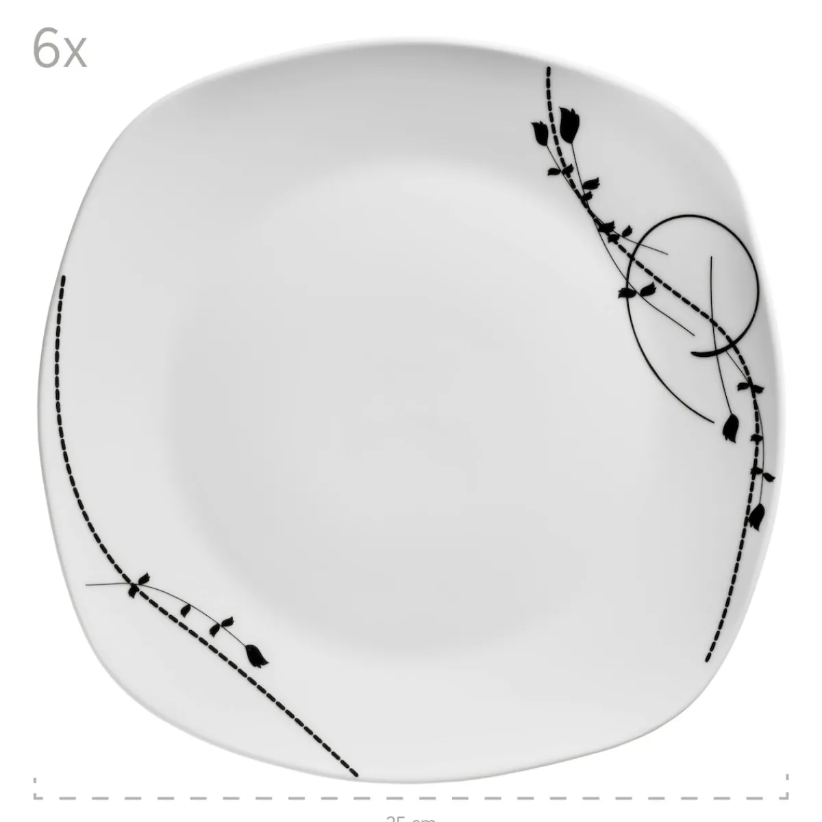 Edel und fast etwas mysthisch rankt das schwarze Blattdekor am Tellerrand entlang. Das Tellerset Londra ist genau die richtige Wahl für alle, die ein besonderes Geschirrset abseits von graphischen Mustern suchen. Die quadratische Form mit den abgerundeten Ecken sorgt für eine zusätzliche Abwechslung auf dem Esstisch. Das Tellerset Londra ist dauerhaft spülmaschinen- und mikrowellengeeignet, und dadurch äußerst pflegeleicht. Dieses Geschirr-Set wird in einer speziell für dieses Service entwickelten, vielfach getesteten Postversandverpackung aus umweltschonenden Materialien versendet. Bitte beachten Sie: Für eine objektive Vergleichbarkeit gehen unsere Füllmengenangaben von einer randvollen Befüllung aus. Aufgrund der besonderen Glasurtechnik kann es zu leichten Farbabweichungen kommen.
