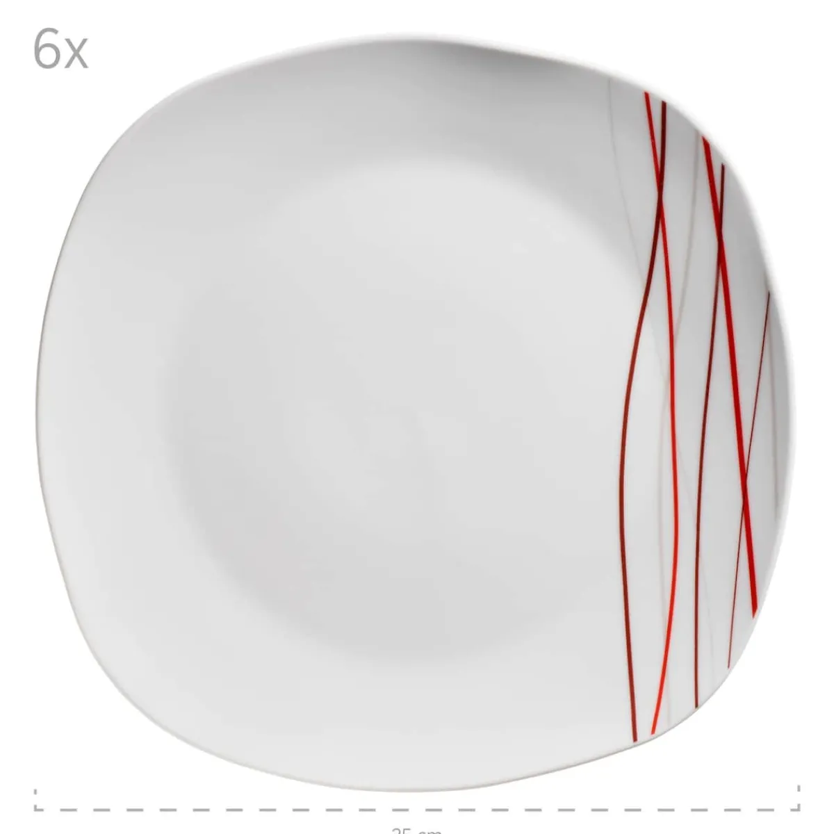 Unkompliziert, modern und geradlinig – das Tellerset der Serie Sencilla ist perfekt geeignet für die Alltagsküche. Das rote Liniendekor bietet einen tollen Kontrast zum weißen Porzellan ohne den Charakter eines zeitlosen Geschirrsets zu verfälschen. Die quadratische Form mit den abgerundeten Ecken sorgt für eine Abwechslung auf dem Esstisch. Das Tellerset Sencilla ist dauerhaft spülmaschinen- und mikrowellengeeignet, und dadurch äußerst pflegeleicht. Dieses Geschirr-Set wird in einer speziell für dieses Service entwickelten, vielfach getesteten Postversandverpackung aus umweltschonenden Materialien versendet. Bitte beachten Sie: Für eine objektive Vergleichbarkeit gehen unsere Füllmengenangaben von einer randvollen Befüllung aus. Aufgrund der besonderen Glasurtechnik kann es zu leichten Farbabweichungen kommen.