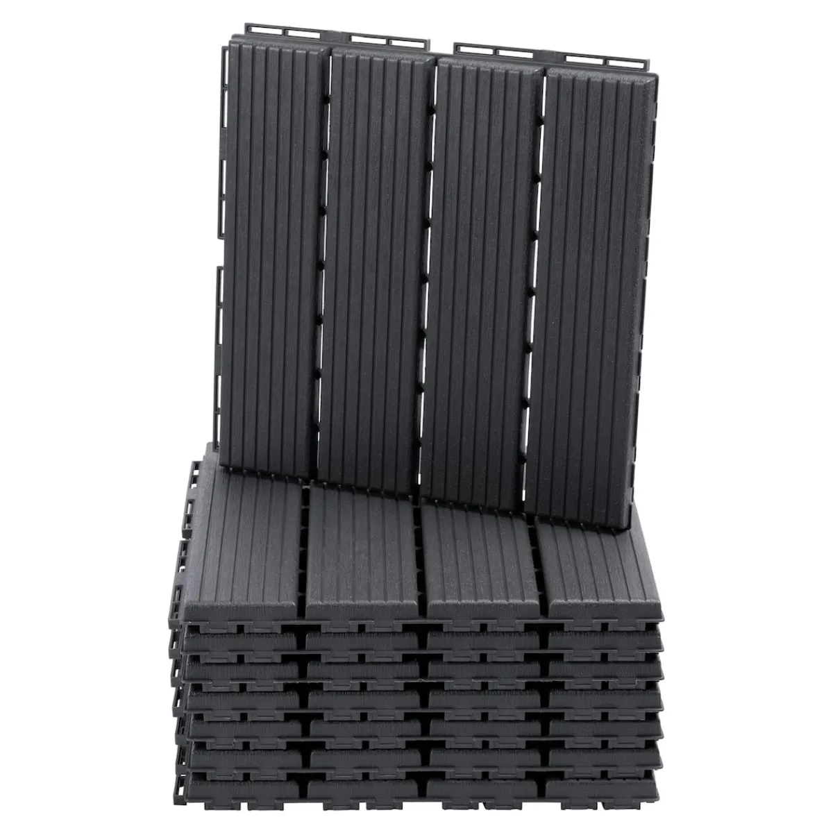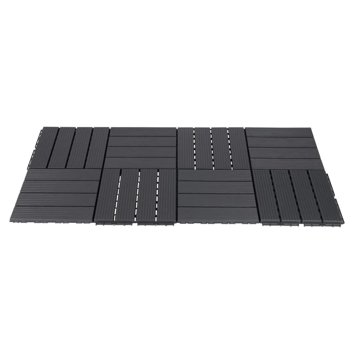 Verschönern Sie Ihre Terrasse oder Ihren Balkon im Handumdrehen! Die pflegeleichten, modernen Fliesen in klassischem Grau lassen sich dank Klick-System ganz einfach zusammenstecken und kinderleicht verlegen. 4 Designs zum Auswählen!