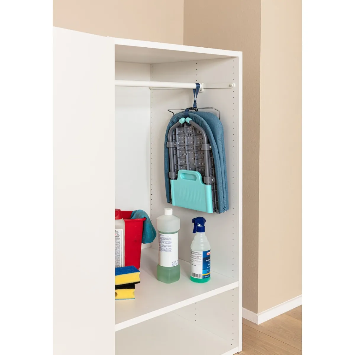 So leicht in der Handhabung, so groß ist der Bügelkomfort: Einfach aufklappen und loslegen – mit 80 cm Bügelfläche und der ausziehbaren Bügeleisenablage sind Sie perfekt für Ihren Wäscheberg gerüstet! Ist die Bügelarbeit erledigt, wird das Brett flach zusammengeklappt und dank der Schlaufe platzsparend im Schrank aufgehängt. Mit rutschhemmenden Gummifüßen für festen Stand.