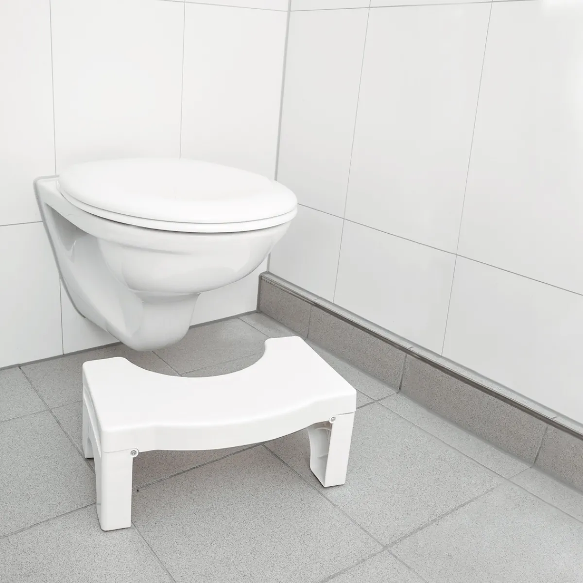Dieser Toilettenhocker bringt Ihren Körper in die natürliche Hockposition und ermöglicht eine günstige Darmentleerung ohne Pressen. Platzsparend faltbar. Mit Anti-Rutsch-Füßen.