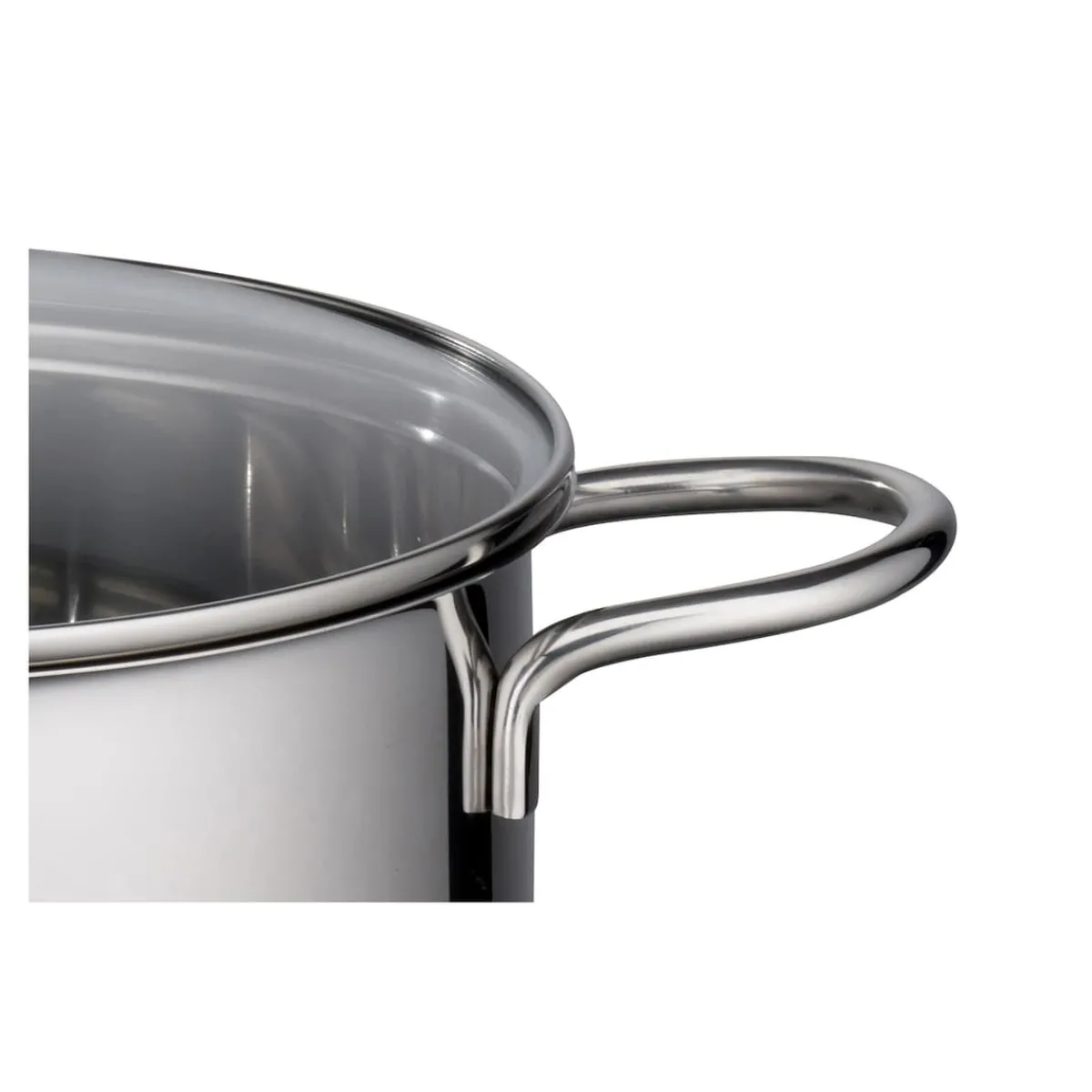 Das 5-teilige Topfset kombiniert Effizienz und Eleganz. Der Impactboden sorgt für eine optimale Energienutzung, während die hochglanzpolierte Innen- und Außenseite mit Literskala Funktionalität und Stil vereint. Glasdeckel mit stoßfestem Edelstahlrand und robuste Edelstahldrahtgriffe bieten Sicherheit und Komfort. Perfekt für vielseitiges und energiesparendes Kochen!