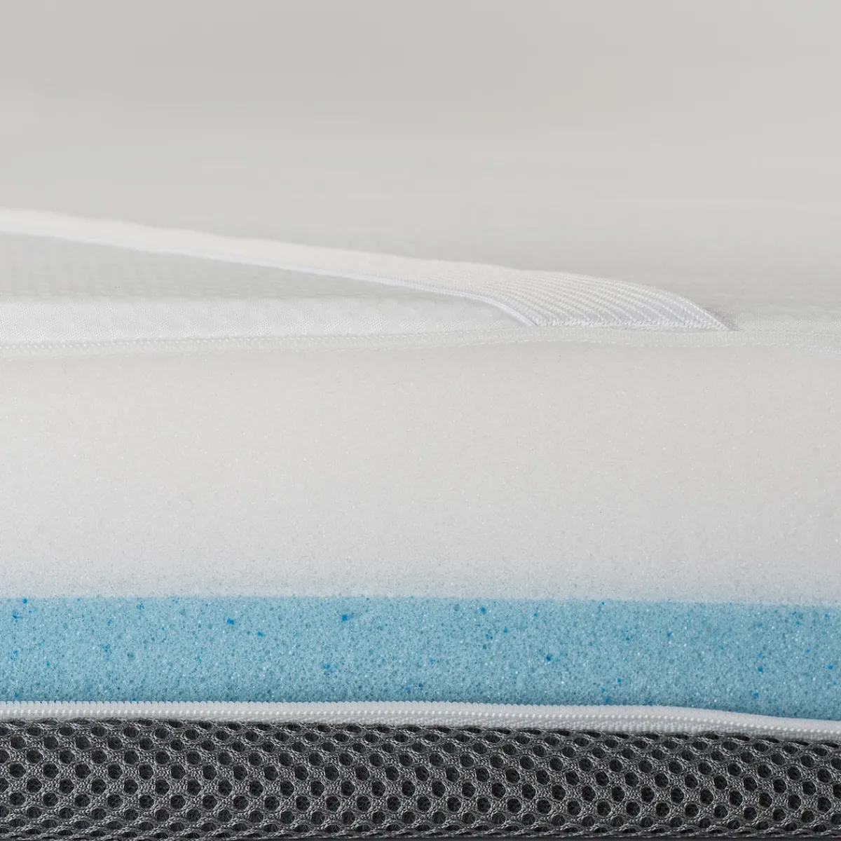 Das Geheimnis des eazzzy Toppers besteht in den zwei Schichten, aus denen er aufgebaut ist. Der Komfortschaum stützt die Wirbelsäule in ihrer gesamten Länge, das heißt vom Kopf bis zum Becken. Gleichzeitig bietet der anschmiegsame Gelschaum ergonomischen Liegekomfort, und zwar unabhängig von der Schlafposition. Das heißt, der Topper ist sowohl für Seiten- als auch Bauch- und Rückenschläfer geeignet. Wer unruhig schläft, profitiert von den bewegungsregulierenden Eigenschaften der Auflage, die mit ihrer Elastizität Schlafstörungen und Schmerzen vorbeugen kann. Mit der OptiAir-Steppung auf dem Bezug und dem Klimaband verbessert sich auch das Schlafklima, sodass Sie nachts weniger leicht schwitzen und somit auch im Sommer erholsamen Schlaf finden.