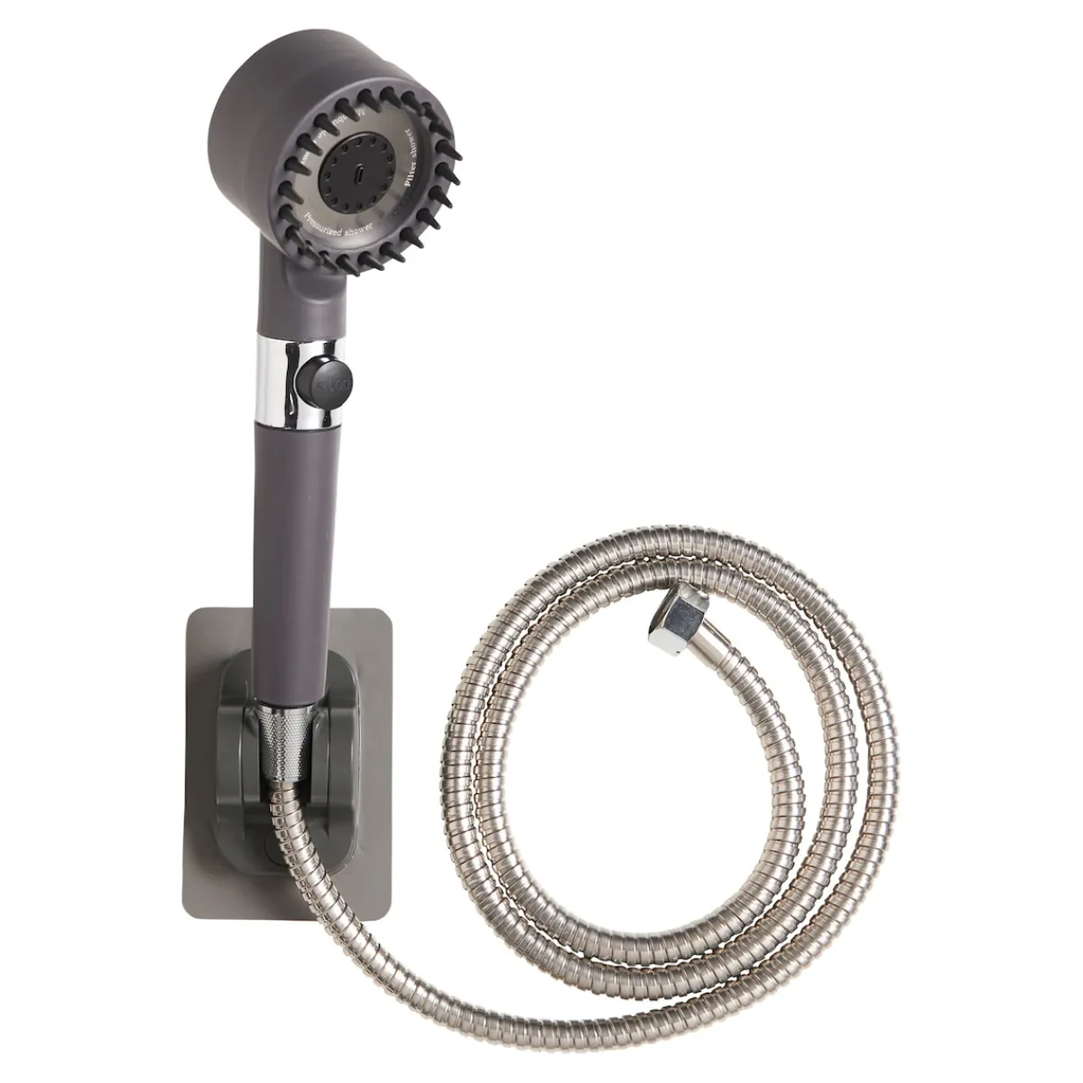 Abmessungen: Duschkopf (LxBxH): 25×7,5×6 cm, Halterung (LxBxH): 12,5x8x5,5 cm, Wasserleitung (L): 150 cm