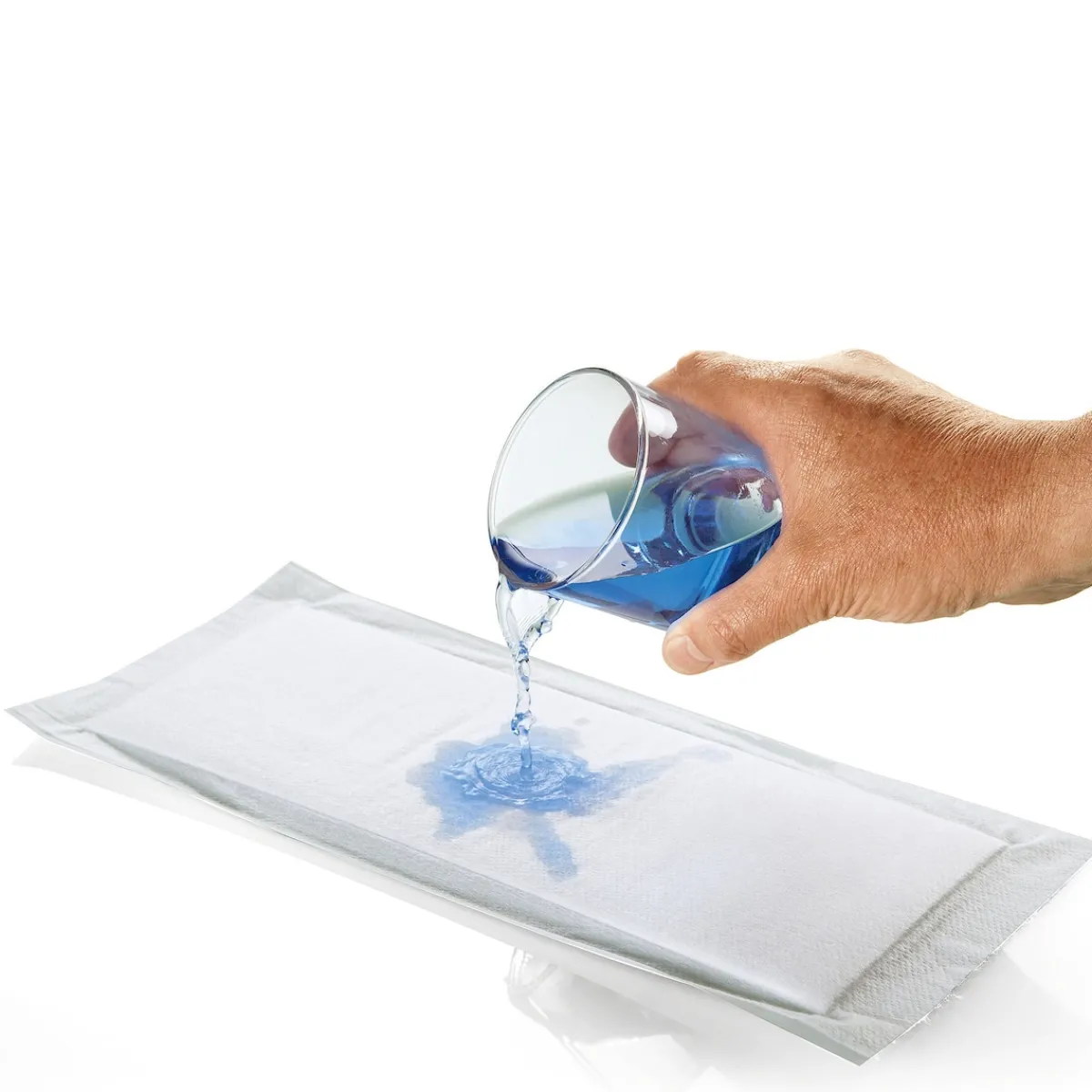 - Flüssigkeit wird sofort in Gel umgewandelt