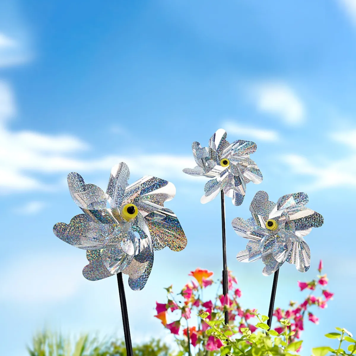 Jetzt ist Schluss mit ungebetenen Gästen im Garten – denn diese 5 Windräder lassen sich ganz leicht in die Gartenerde – z. B. in der Nähe von Beerensträuchern – stecken. Angetrieben durch den Wind vertreiben sie im Nu die Vögel! Gleichzeitig verschönern sie Ihren Garten. Zum selbst zusammenbauen.