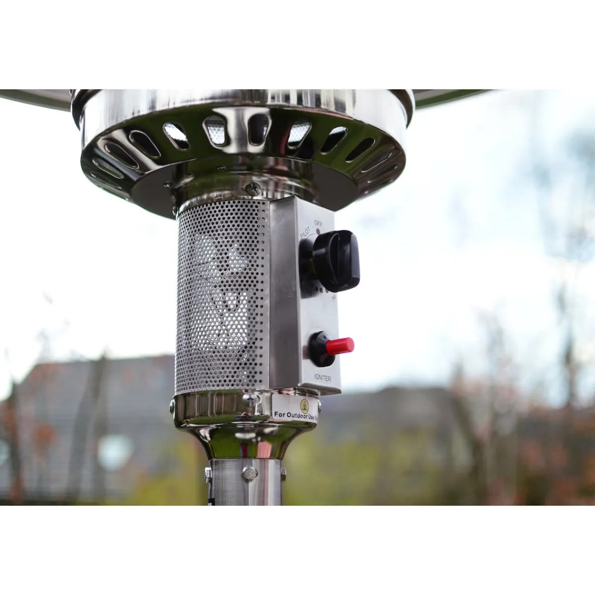 Die Aussenheizung wird mit Gas betrieben und verfügt über eine Piezo-Zündung. Der Heizkörper wird sekundenschnell aufgewärmt und ist unabhängig von einem Stromanschluss. Dank des Schutzgitters und der Sicherheitsflammlöschvorrichtung ist der WÄRMEPILZ sehr sicher.