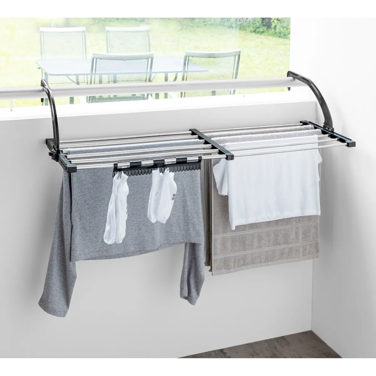 Nutzen Sie jeden Platz in Ihrem Zuhause mit diesem vielseitigen Wäschetrockner! Ob an Balkon, Fensterrahmen, Duschkabine oder Heizkörper – dieser Trockner passt sich an Ihre Bedürfnisse an. In der Breite ausziehbar.