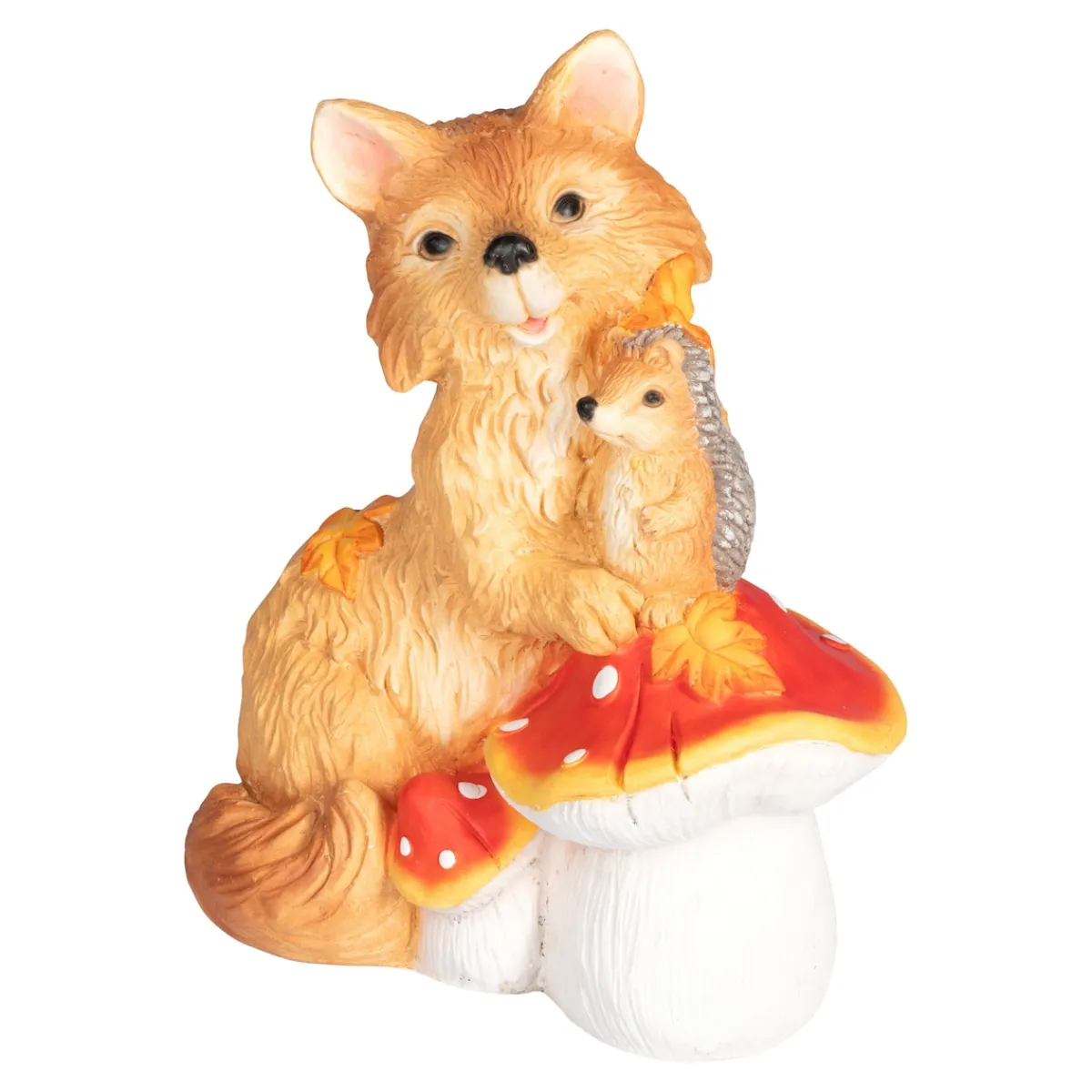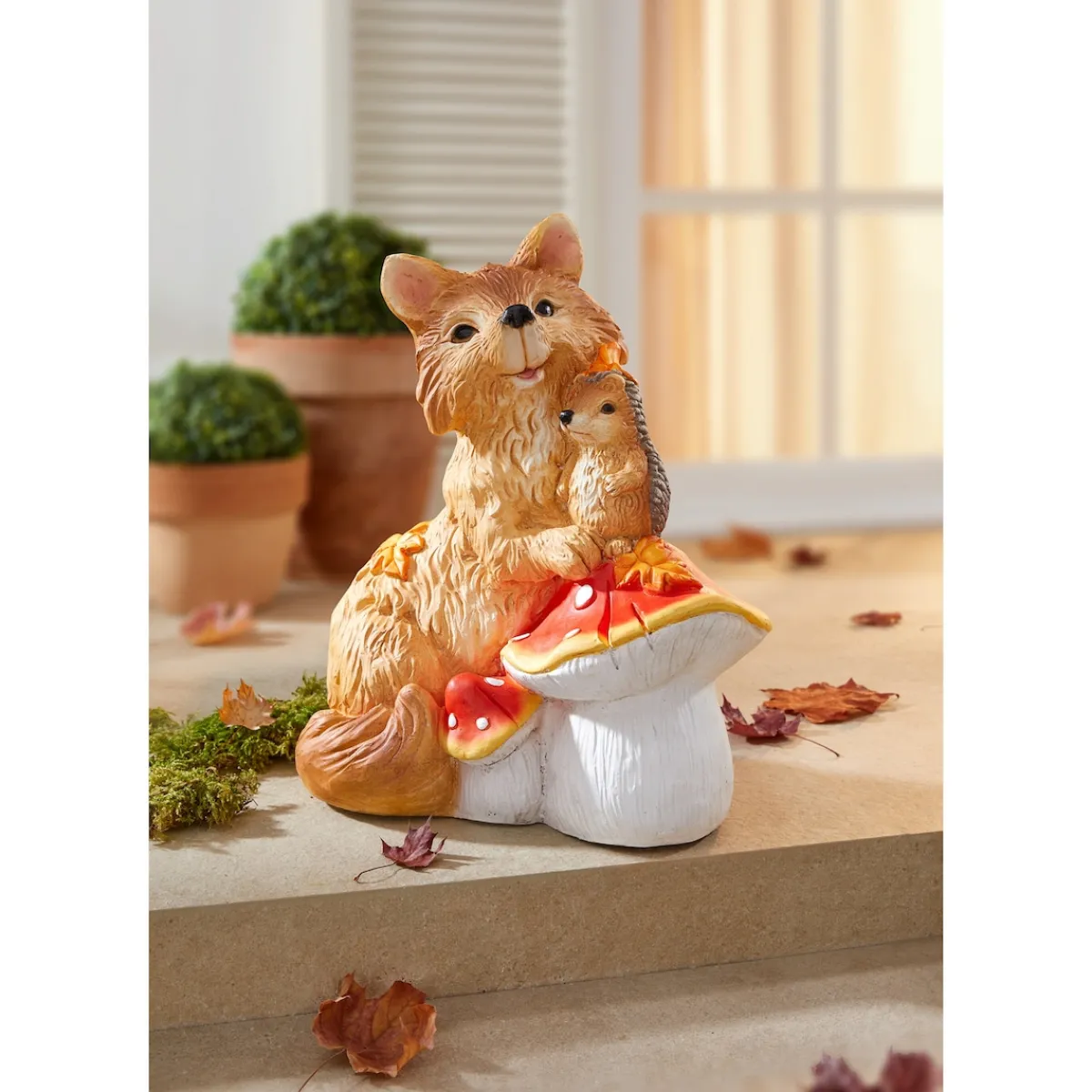 Ein Fuchs und ein Igel trafen sich eines Tages im Wald. Der Igel fragte den Fuchs: „Wollen wir Freunde sein?“ Die Antwort des Fuchses sieht man an dieser Dekofigur voller herbstlicher Harmonie!