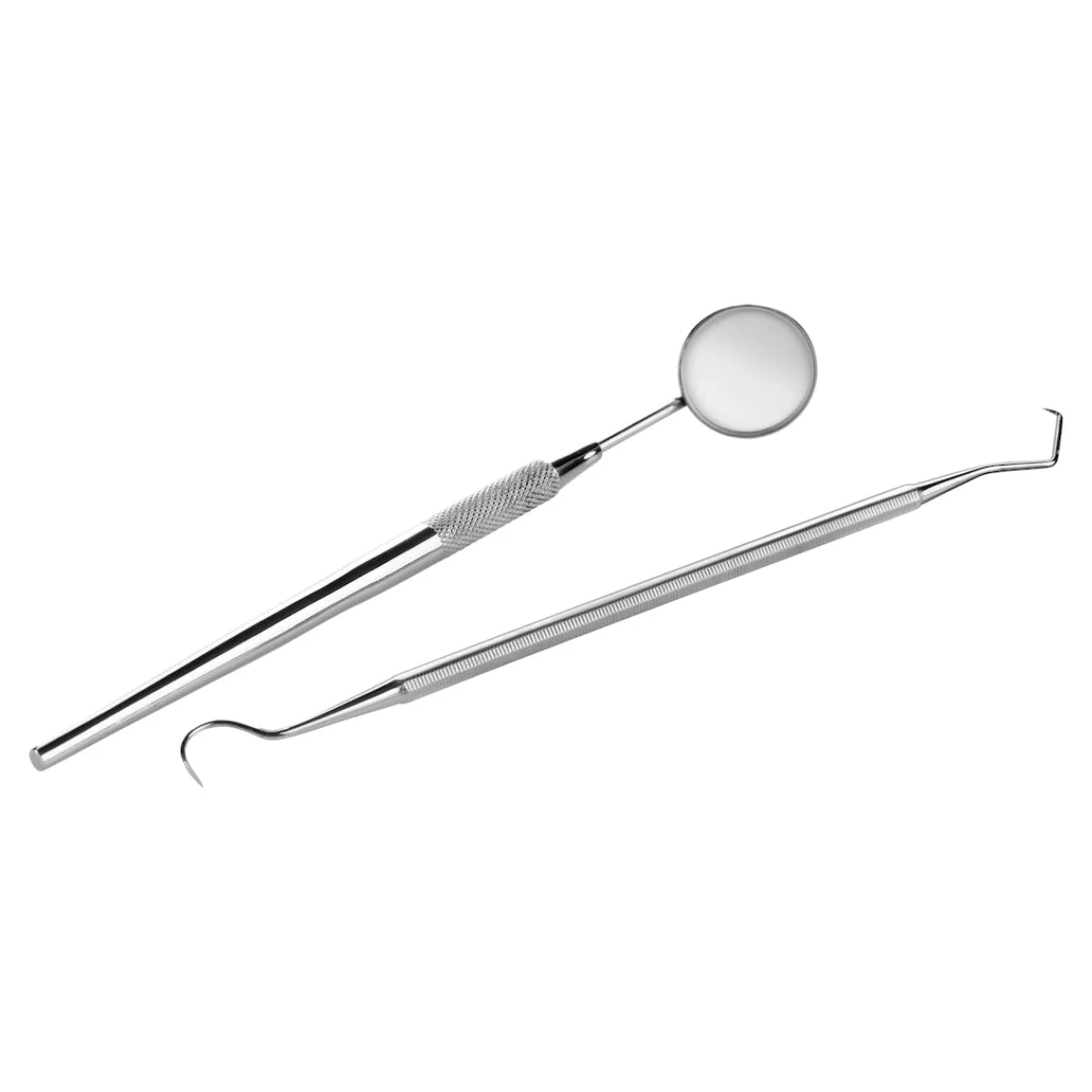 Das Set besteht aus einem Mundspiegel und einem Zahnreiniger/ Zahnsteinkratzer mit zwei unterschiedlichen Enden (1x halbrund, 1x zweifach abgewinkelt). Damit gelingt die tägliche Zahnpflege schnell und gründlich, sogar Zahnzwischenräume und versteckte Winkel können erreicht werden. Spiegel abschraubbar, Ø ca. 2,5 cm, Länge ca. 16,5 cm bzw. 15,5 cm.