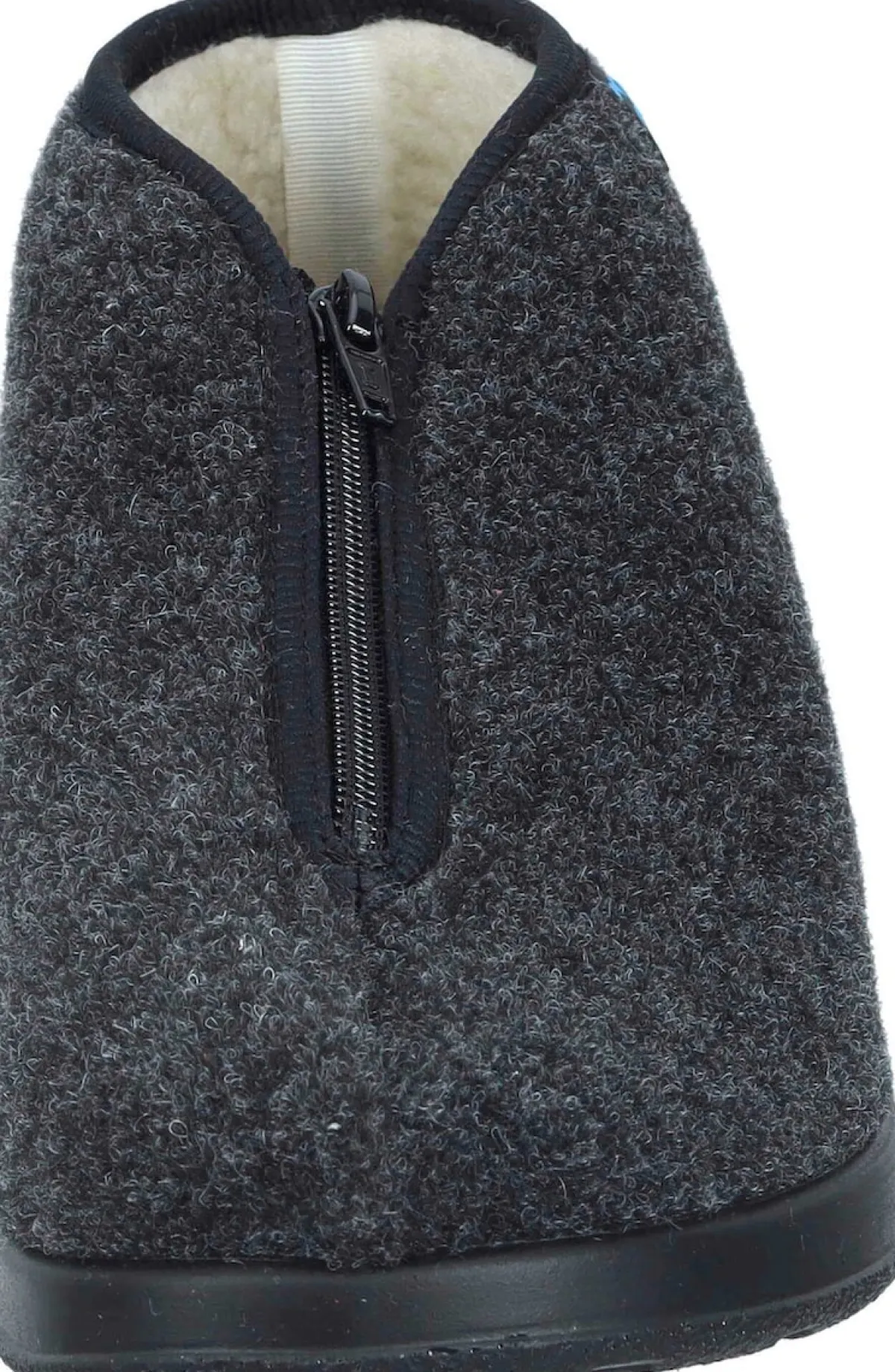 Bei diesem Produkt handelt es sich um einen Schuh aus der Kategorie Klassische Hausschuhe für Herren. Als Obermaterial wurde Filz verwendet und im inneren Bereich des Schuhs wurde Schurwollfutter und Schurwolldecksohle verarbeitet. Die Schuhweite dieses Artikels ist normal und somit standard. Als Verschlussart wurde Reißverschluss gewählt und die PU-Sohle rundet das Produkt ab. Der Artikel fällt normal aus, bitte die gewohnte Größe bestellen. – Schuhweite: normal –