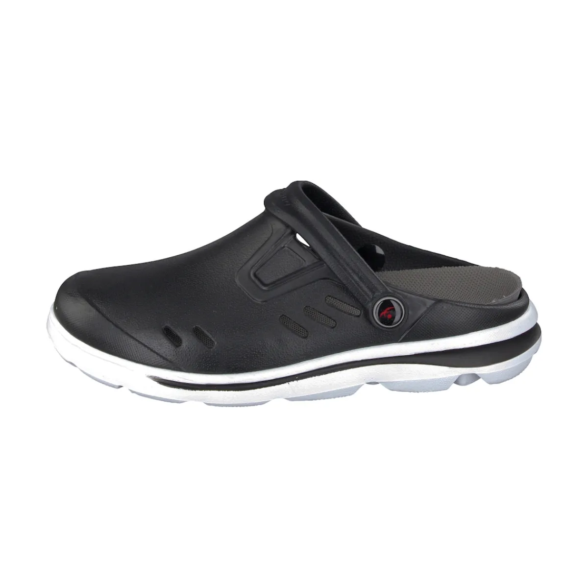Die auswechselbare, orthopädische Einlage positioniert den Fuß optimal und verbessert Abrollverhalten und Körperhaltung. Das innovative Duflex-Material ist unglaublich bequem. Mit umklappbarem Fersenriemen und profilierter, rutschhemmender Laufsohle. Aus EVA-Material Duflex. Schmale Passform – bitte eine Schuhgröße größer bestellen!