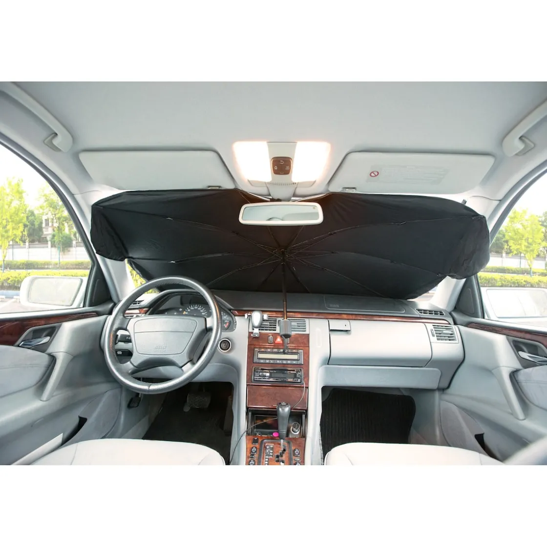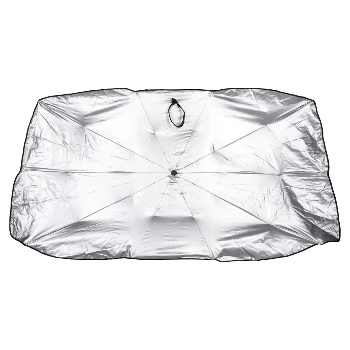 Dieser praktische Helfer sorgt bei Sommerhitze für angenehmere Temperaturen im Auto und weniger heiße Sitze. Einfach wie einen Regenschirm aufspannen, an der Windschutzscheibe platzieren und schon reflektiert die Folie das Licht und sperrt die Wärme aus.