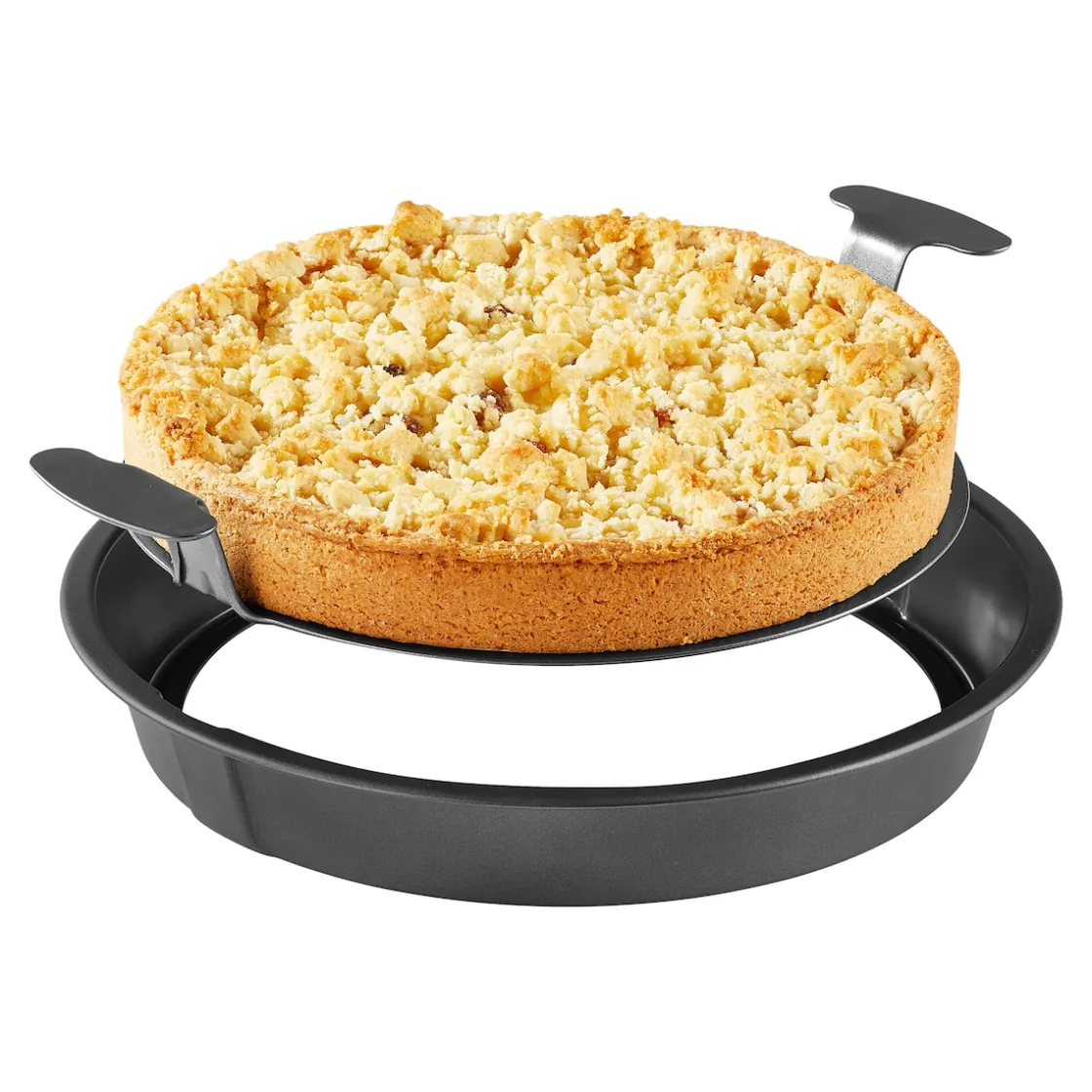 Diese raffinierte Kuchenform ist die perfekte Idee für jede Kaffeetafel: Mit den praktischen Griffen heben Sie den Kuchen einfach aus der Form und servieren ihn. So kommt selbst der empfindliche Obstkuchen ansehnlich und unversehrt auf den Tisch.