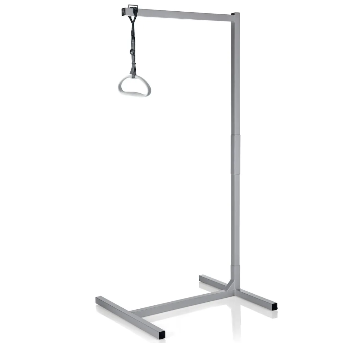 Mit dieser Aufrichthilfe können Sie sich auch im Krankheits- oder Pflegefall sicher im eigenen Bett aufrichten. Sie unterstützt beim Aufrichten aus einer liegenden in eine sitzende Position, hilft aber ebenso beim Anheben des Gesäßes, um eine Bettpfanne zu verwenden. Auch kann der 176 cm hohe Bettgalgen als Sicherungshilfe beim Umsetzen vom Bett in einen Roll- oder Toilettenstuhl dienen. Die Griffhöhe lässt sich an dem Gurt einstellen (1,24 bis 1,33 m vom Boden aus) und damit an die eigene Körpergröße anpassen.