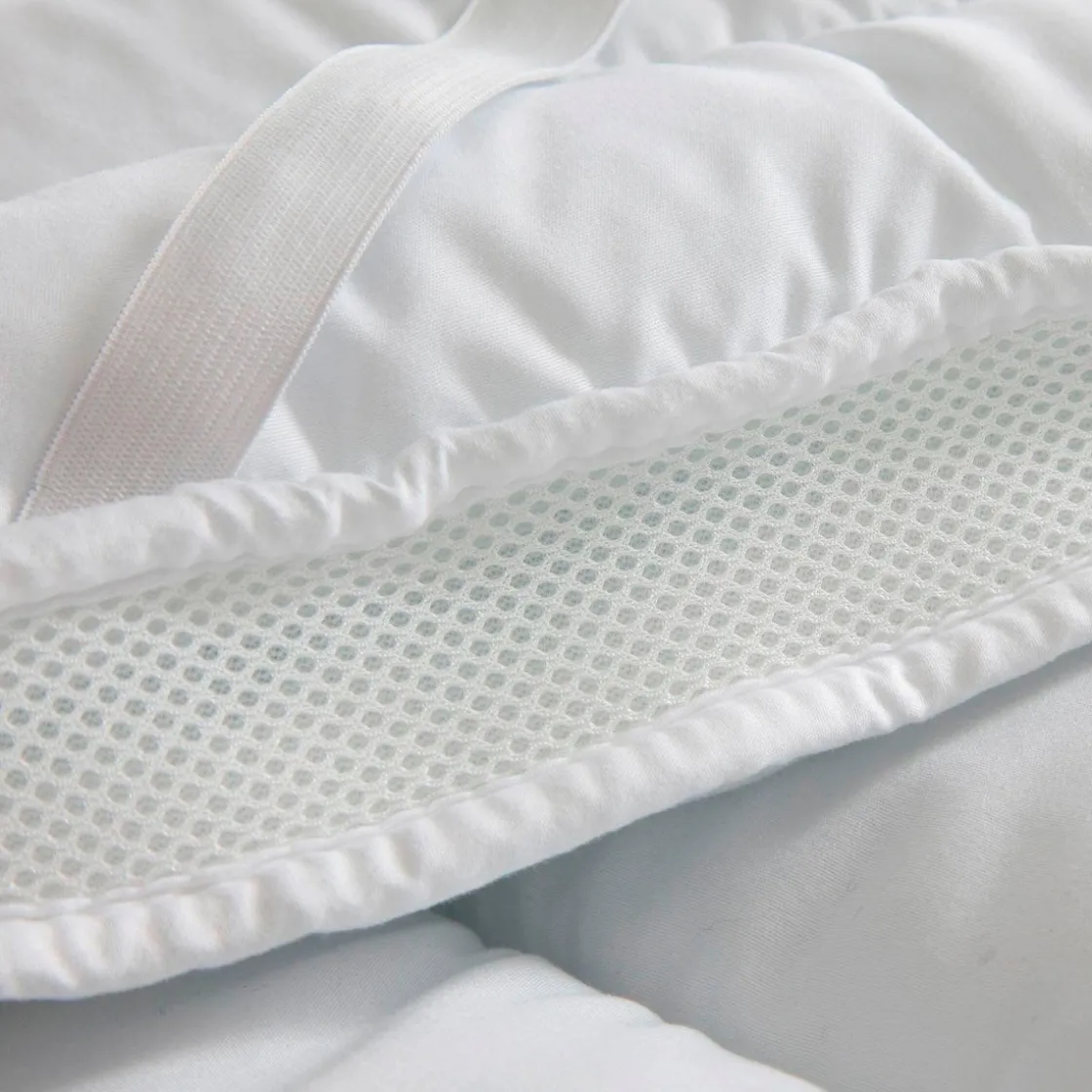 Der atmungsaktive Matratzenschoner erhöht Ihre Liegefläche und bietet Ihnen erstklassigen Wohfühlkomfort und schützt gleichzeitig Ihre Matratze. Das Klimaband sorgt für eine perfekte Durchlüftung und somit ein hervorragendes Schlafklima. Die 4 Gummibänder an den Seiten dienen der einfachen Befestigung an der Matratze. Somit verrutscht die Auflage nicht. Für Hausstauballergiker geeignet.