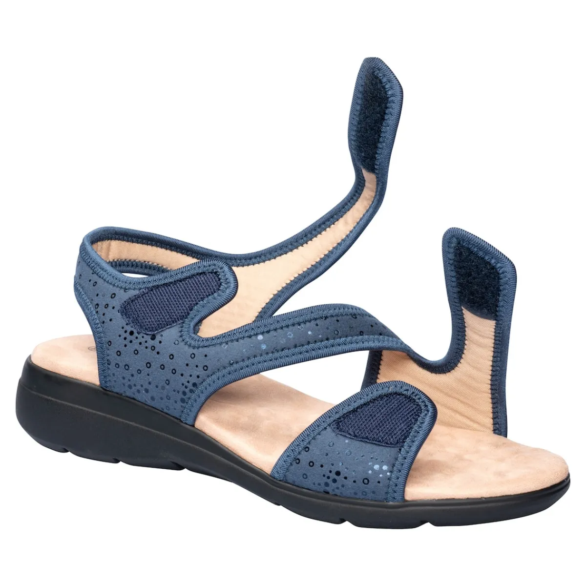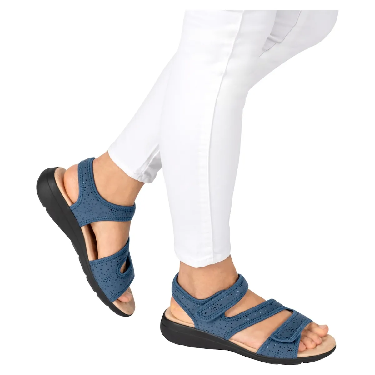 Ihre Füße im Sommerglück! Diese leichte und bequeme Sandale schenkt Ihnen den ganzen Tag höchsten Tragekomfort. 2 Klettverschlüsse ermöglichen eine individuelle Anpassung und Weitenregulierung, sodass sich auch empfindliche Hallux valgus-Füße nicht eingeengt fühlen. Eine weiche Decksohle aus Mikrofaser sorgt für einen Massage-Effekt, den Sie nicht mehr missen möchten. Mit rutschhemmender Laufsohle.