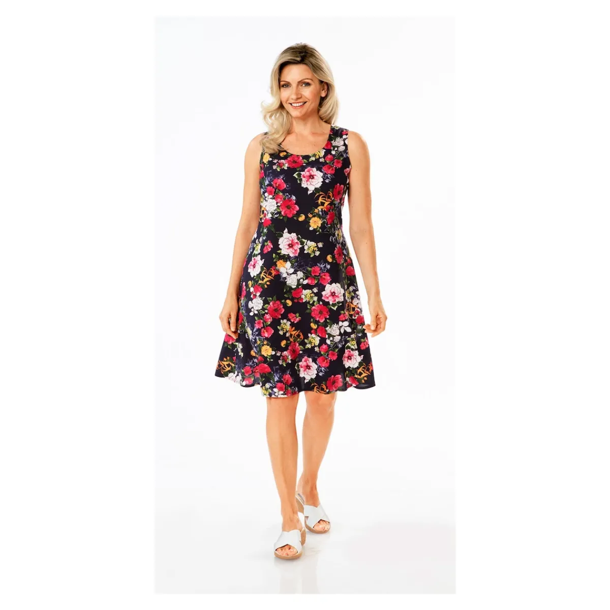 Was für eine anziehende Blumenpracht! So schlüpfen Sie schon morgens in echte Frühlingsstimmung: Dieses elegante und ärmellose Kleid begeistert mit einem frischen Blumenmuster. Der ausgestellte Schnitt kaschiert galant so manche Problemzone und sorgt für viel Komfort.