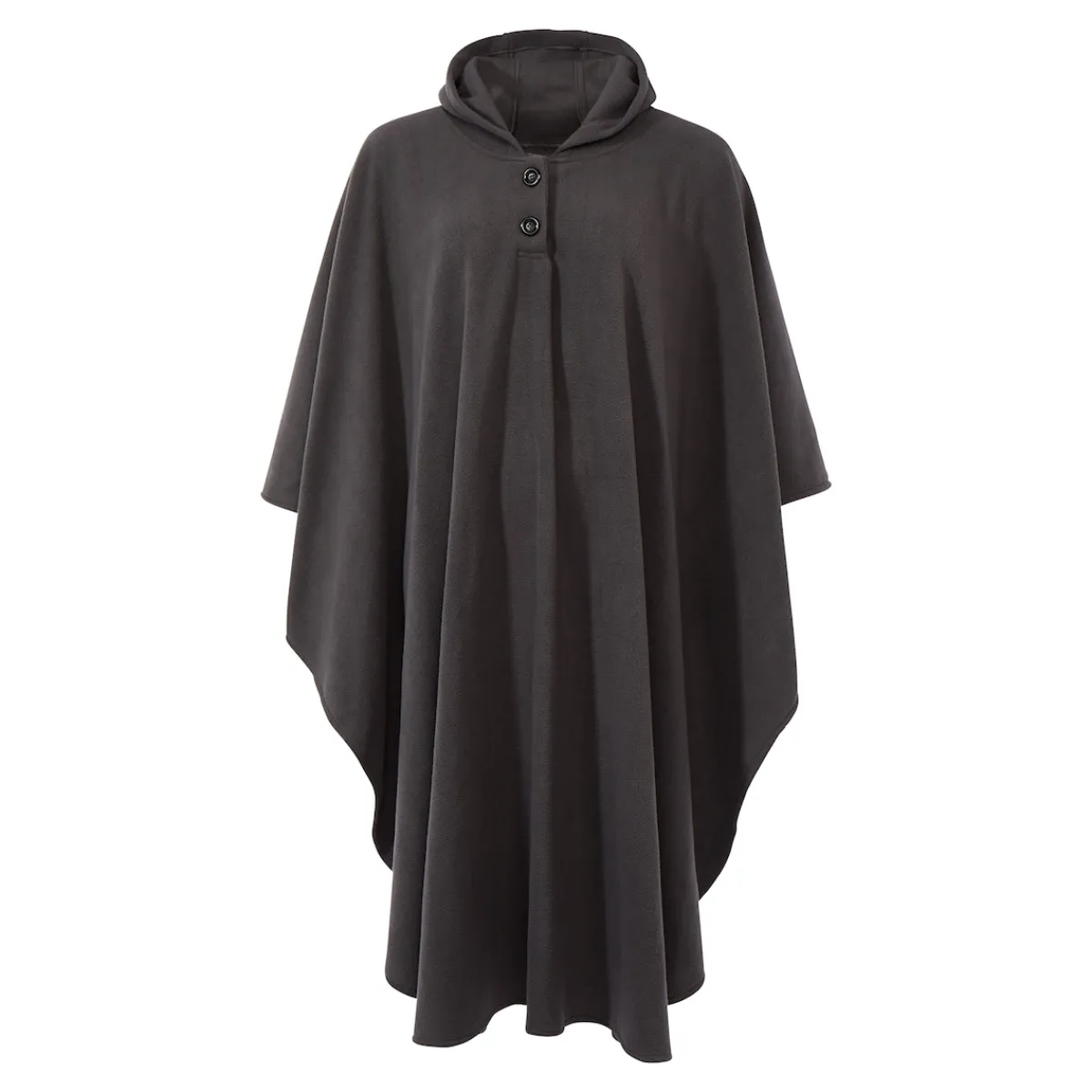 Dieser Fleece-Poncho ist bis ins Detail durchdacht: mit Kapuze, 2-Knopf-Verschluss, verlängerter Vorderseite zum Schutz der Beine sowie einer verkürzten Rückseite. So sind Sie auf Ihrem Rollstuhl stets wetterfest unterwegs. Rückenlänge: 62 cm.