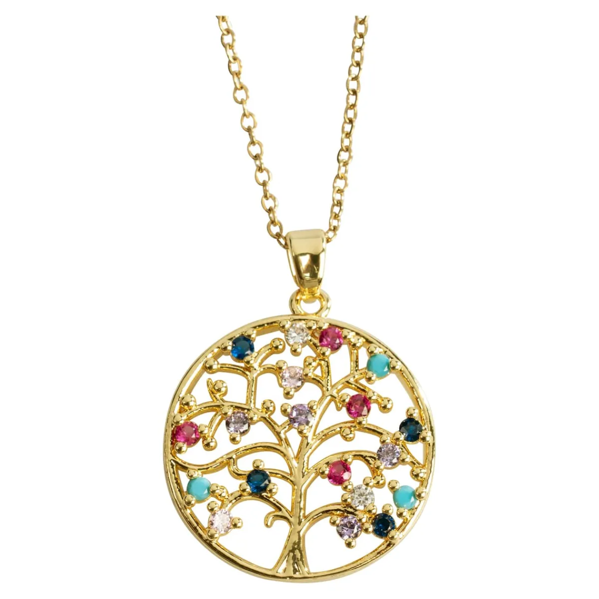 Äste, die in den Himmel wachsen und doch verwurzelt sind – ein schönes Sinnbild, das in dieser femininen Halskette verkörpert wird. Detailliert und liebevoll gearbeitet, glitzern farbige Glassteine als Blätter an den Zweigen.