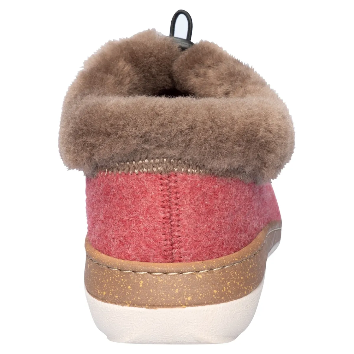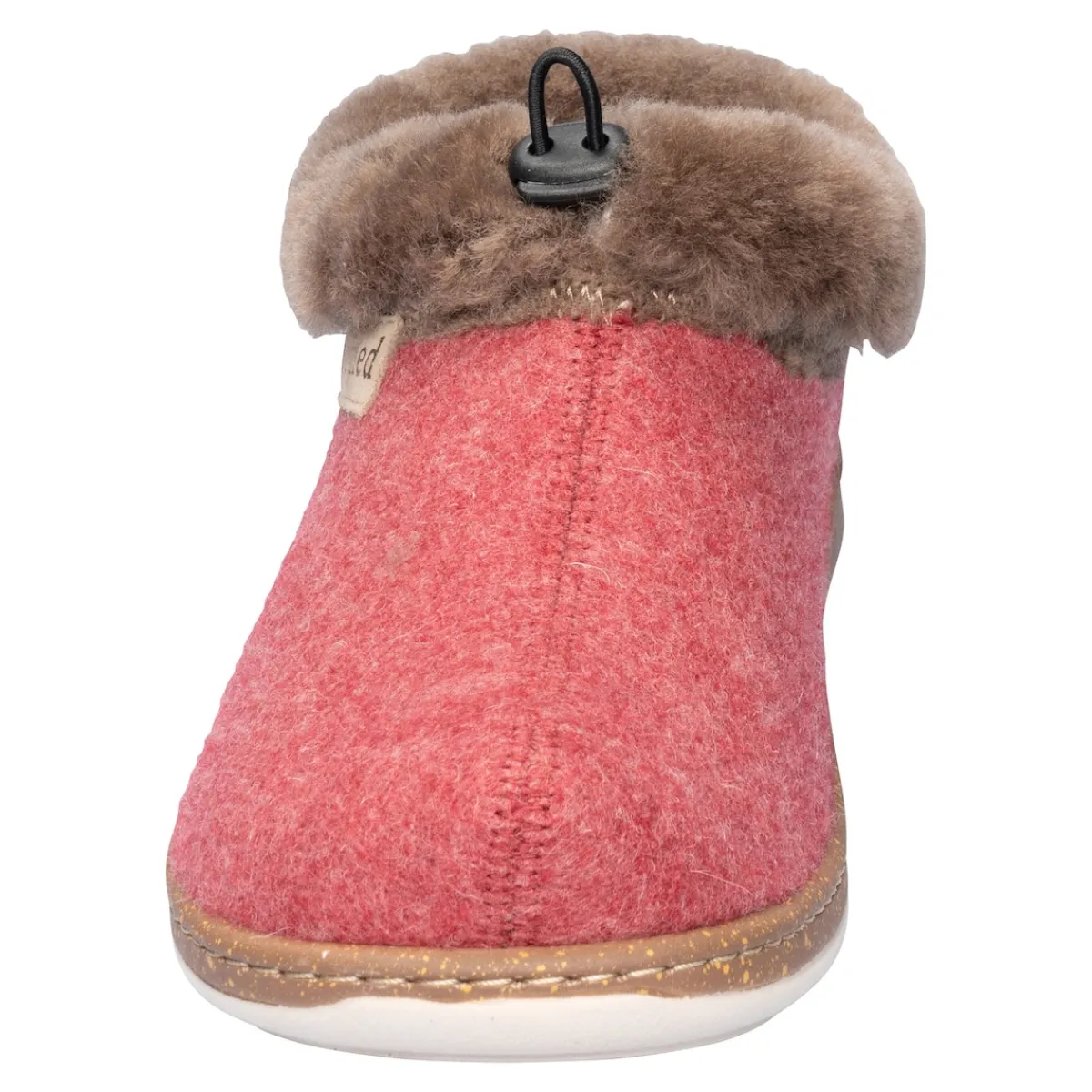 Gemütlicher Hausschuh mit angenehmer Keilhöhe aus robustem Filzmaterial. Durch den Gummizug an den Fuß anpassbar für optimalen Halt. Die bequeme, natürliche Fußform und die PU-Sohle sorgen für ein herrliches, wolkenweiches Gehgefühl. Herausnehmbar Einlegesohle, durch persönliche Einlagen ersetzbar.