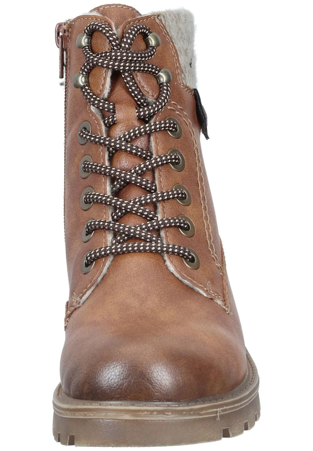 Bei diesem Produkt handelt es sich um einen Schuh aus der Kategorie Schnürstiefeletten für Damen. Als Obermaterial wurde Synthetik verwendet und im inneren Bereich des Schuhs wurde Warmfutter und gepolsterte Textildecksohle verarbeitet. Die Schuhweite dieses Artikels ist Weite F 1/2 und somit schmal. Als Verschlussart wurde Reißverschluss gewählt und die TR-Sohle rundet das Produkt ab. Der Artikel fällt normal aus, bitte die gewohnte Größe bestellen. – Schuhweite: Weite F 1/2 –
