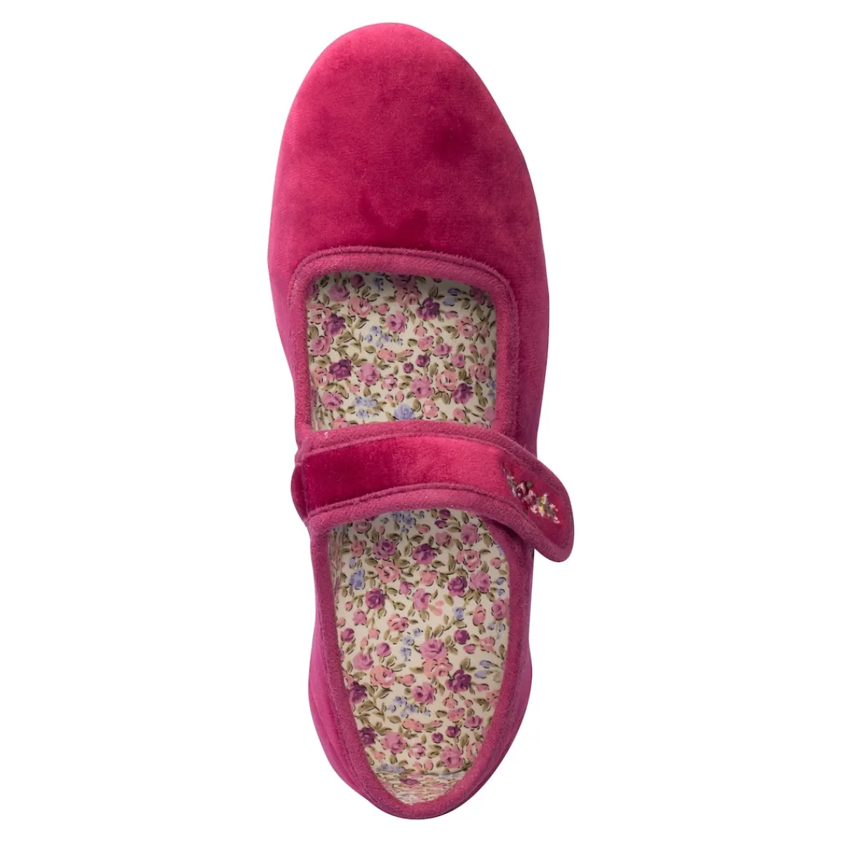 Tänzeln Sie bequem durchs ganze Jahr: in diesem Hausschuhballerina! Bei kühlen Temperaturen spendet die Gratis-Einlegesohle aus Wolle Extra-Wärme! Der Klettverschluss mit süßer Rosenstickerei macht den Ein- und Ausstieg zum Kinderspiel! Mit rutschhemmender Gummi-Laufsohle.
