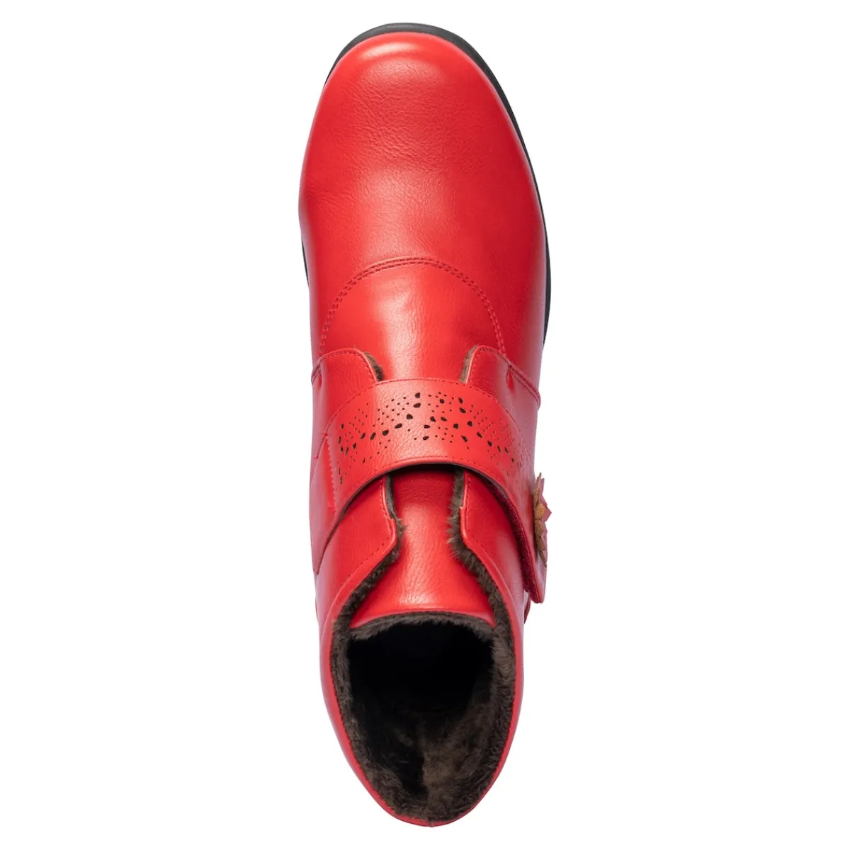 Die äußerst bequeme Stiefelette passt sich mit ihrem breiten Klettverschluss jedem Fuß perfekt an. Das filigrane Lochmuster setzt optisch einen stilvollen Akzent. Der alltagstaugliche Schuh ist innen warm gefüttert und dank weicher Decksohle und rutschhemmender Laufsohle perfekt für die kalte Jahreszeit.