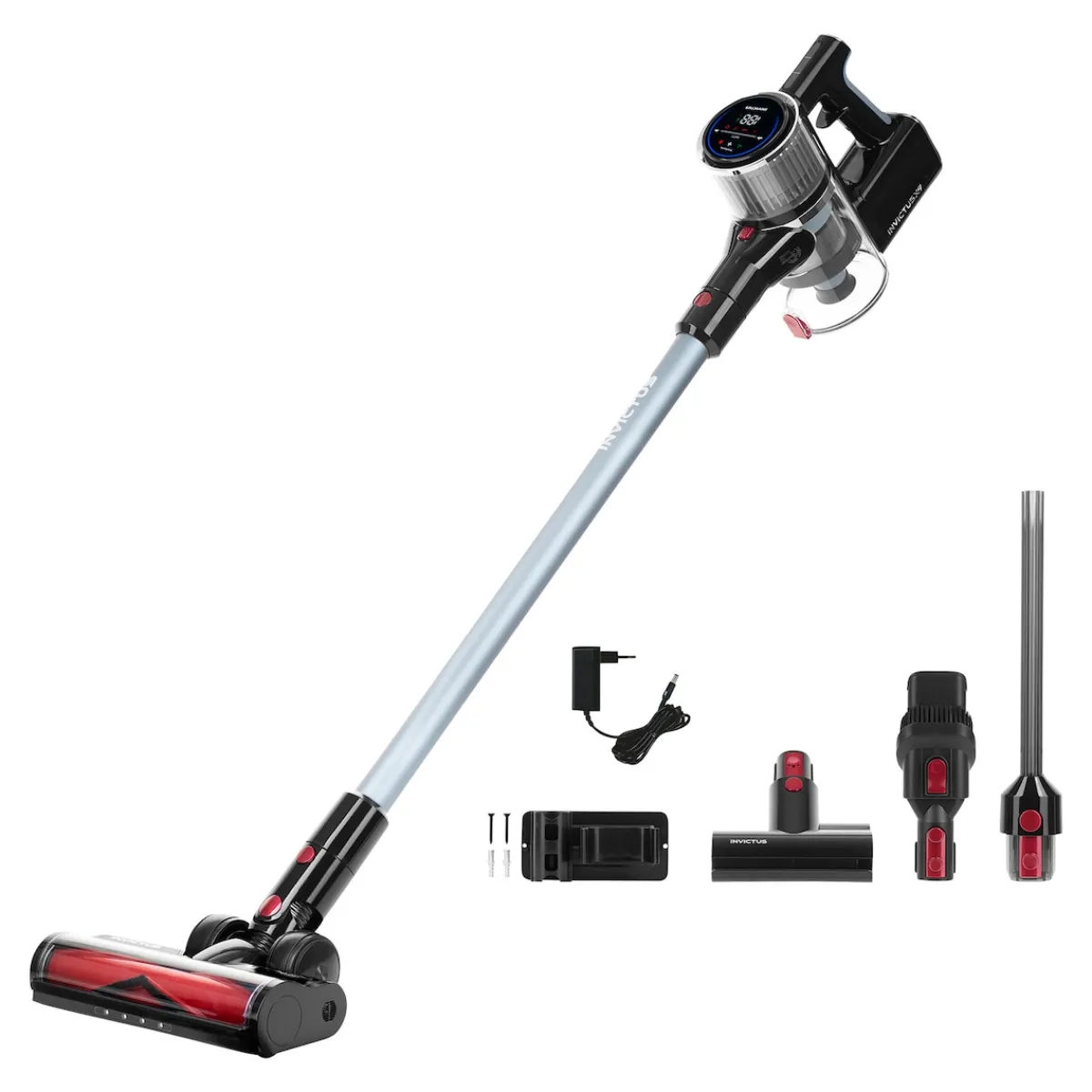 Geben Sie Ihrer Reinigungsroutine einen Boost mit dem Invictus X9 Facelift! Dieser kabellose, beutellose Akku-Staubsauger bietet nicht nur eine unglaubliche Saugkraft für eine Tiefenreinigung im gesamten Haus, sondern auch ein vielseitiges 2-in-1-Design, das Hartböden, Laminat, Parkett und Teppiche mühelos meistert. Mit einer beeindruckenden Akkulaufzeit von bis zu 55 Minuten können Sie sich auf eine langanhaltende Reinigung verlassen. Die Ladedauer von ca. 4 Stunden ermöglicht es Ihnen, den Staubsauger schnell wieder einsatzbereit zu haben. Der 180° Gelenkkopf ermöglicht eine mühelose Navigation, selbst in schwer zugänglichen Bereichen. Die intelligente Reinigungstechnologie, einschließlich Staubsensor, LED-Display und Touchpad, sorgt für optimale Kontrolle über den Reinigungsprozess. Lautstärke 78 dBa, 88 dBa Boost-Modus.