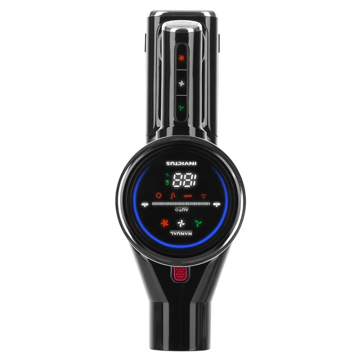 - LED-Display zeigt Akkustand, Saugmodi und Fehlermeldungen an
