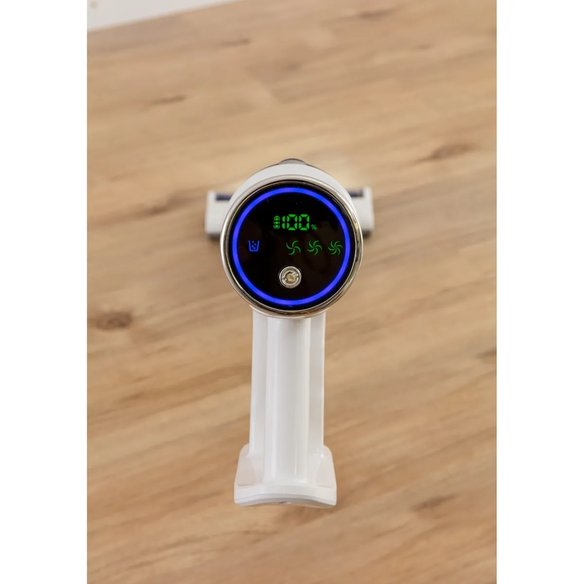 Ein übersichtliches LED-Display macht die Bedienung kinderleicht, und der leistungsstarke Lithium-Ionen-Akku mit 25,9 V in Kombination mit dem langlebigen Hochleistungs-BLDC-Motor mit 350 W garantiert eine effiziente Reinigung. Trotz seiner Kraft arbeitet der Staubsauger extra leise bei nur 70 dB.