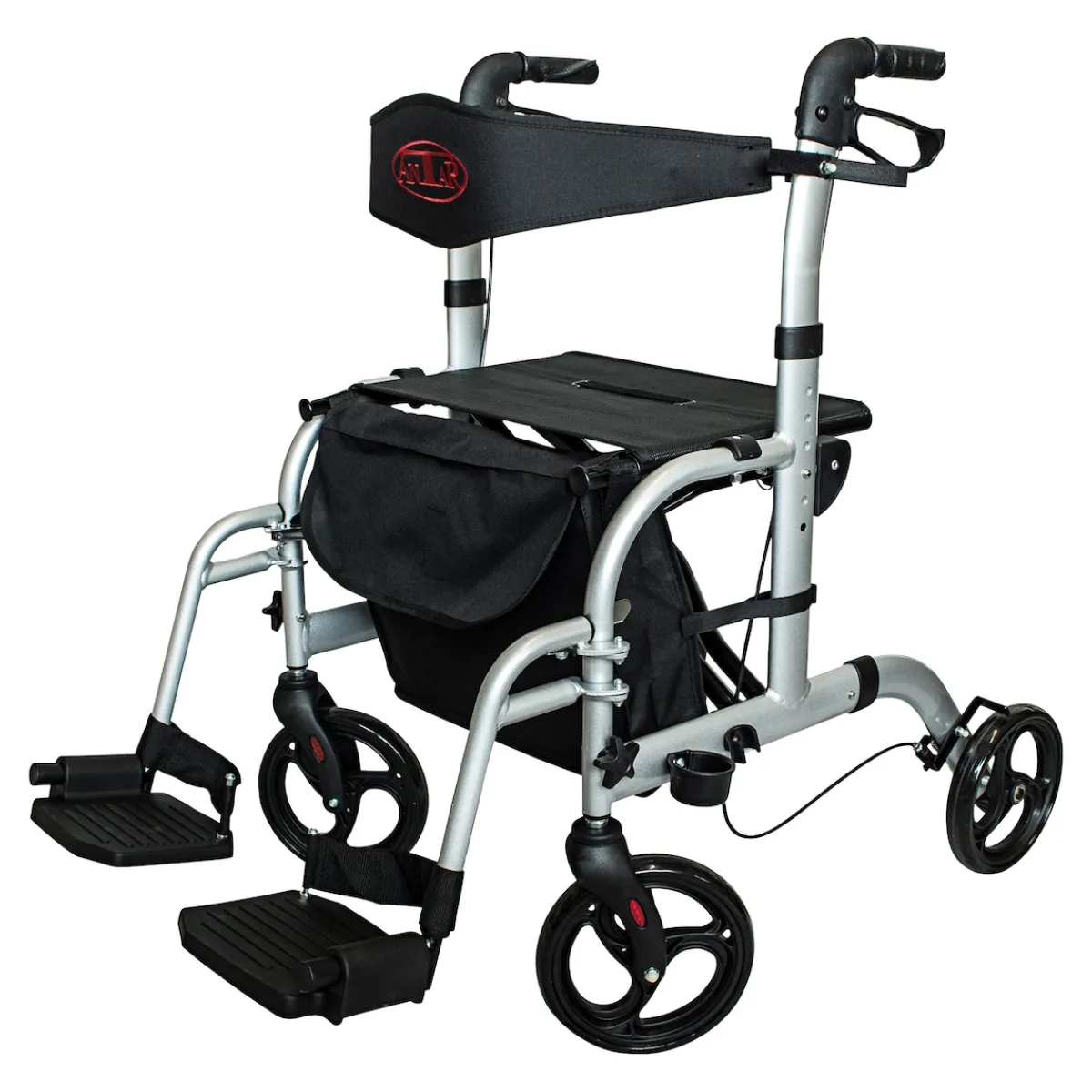 Rollator oder Rollstuhl? Bei diesem Modell müssen Sie sich nicht entscheiden, denn der Alu-Multi-Rollator ist beides in einem! Durch die Montage der schwenkbaren Fußstützen an das Aluminium-Gestell lässt sich der Vier-Rad-Rollator ganz einfach in einen Rollstuhl umbauen.