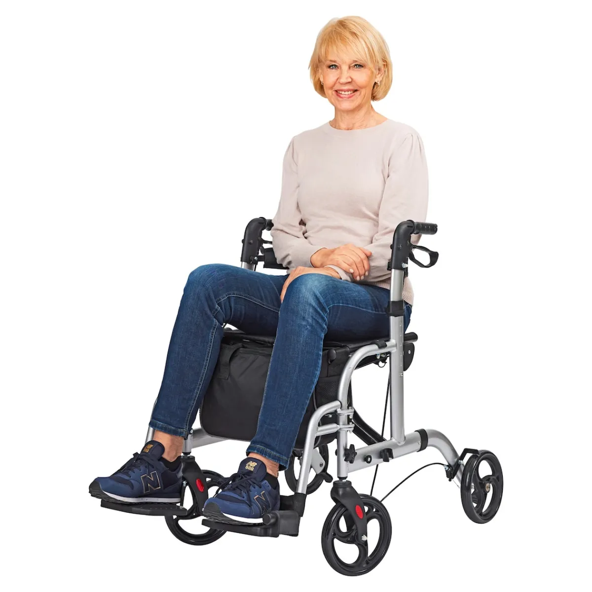 Vier-Rad-Rollator und Rollstuhl in einem