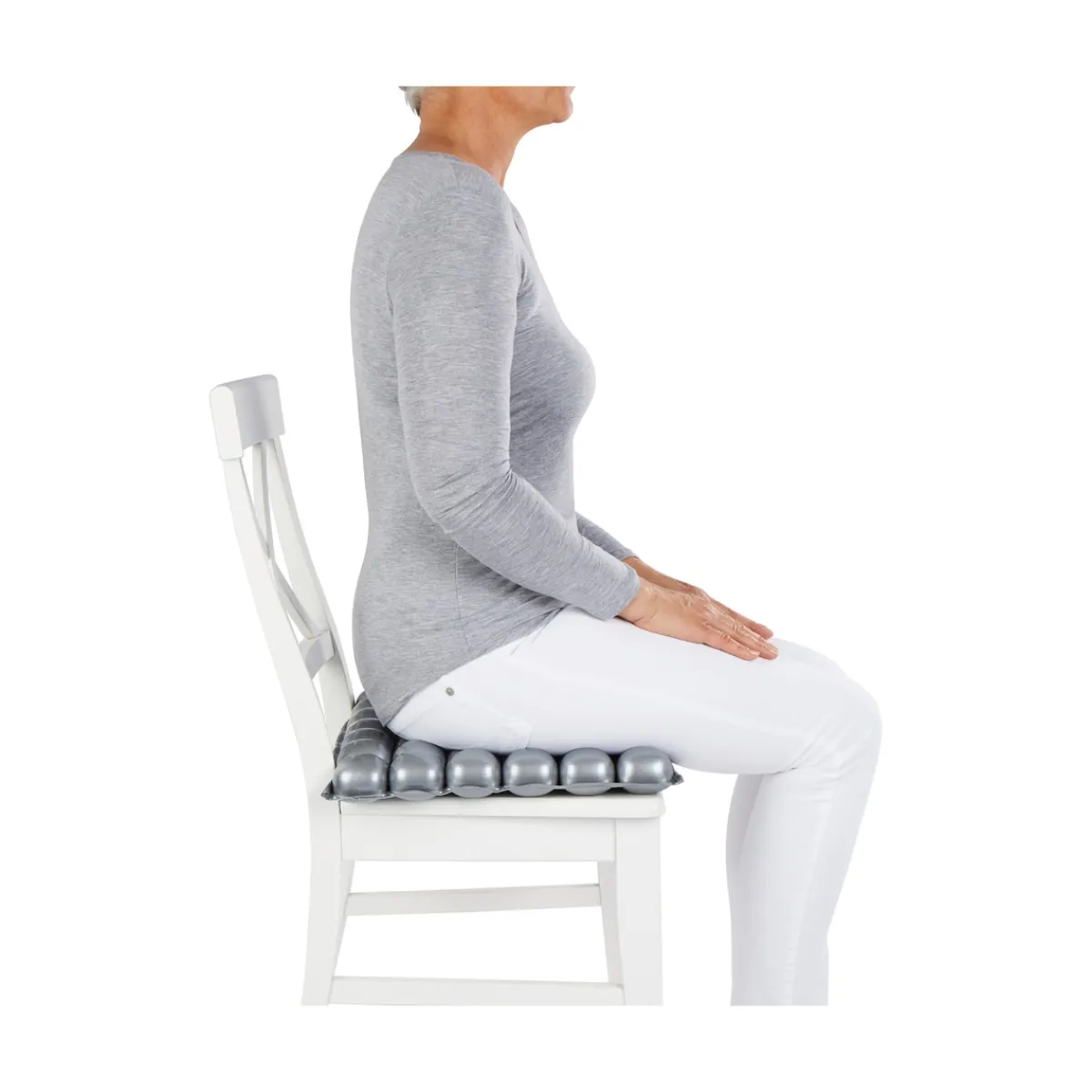 Die mit Luft gefüllten Kammern des Kissens verringern spürbar den Druck auf Kreuz-, Steiß- und Sitzbein und beugen Dekubitus wirksam vor. Die Luftkammern sind miteinander verbunden und lassen sich leicht aufblasen und regulieren.
