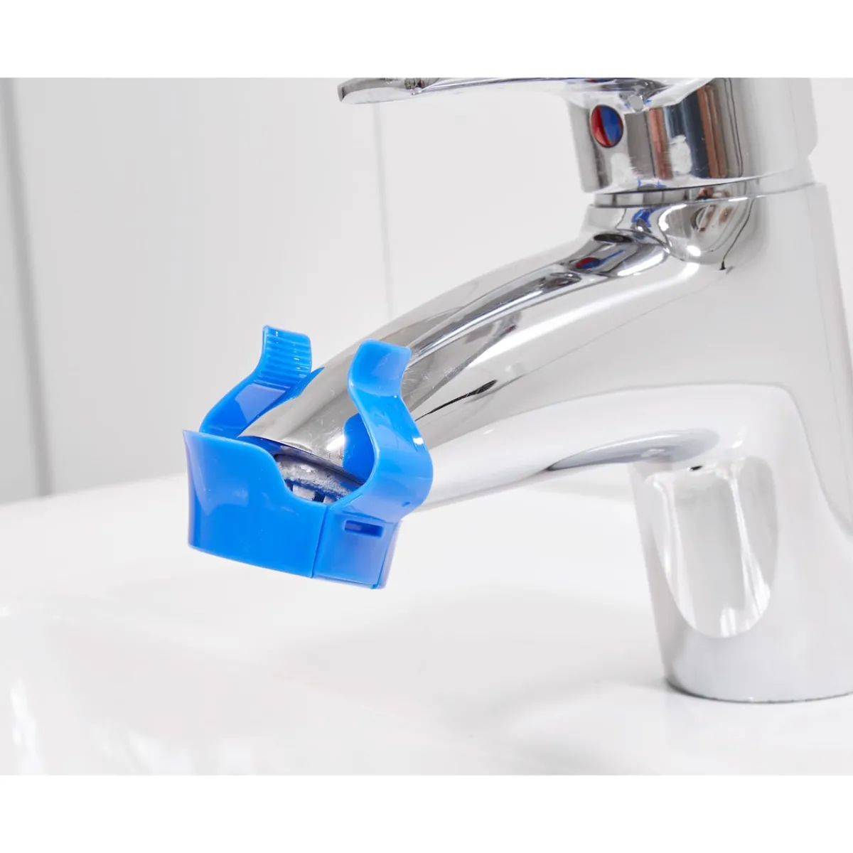 Der Aufsatz krallt sich sicher an fast allen gängigen Wasserhähnen fest, wird mit Kalkreiniger gefüllt – und befreit so von lästigem Kalk.