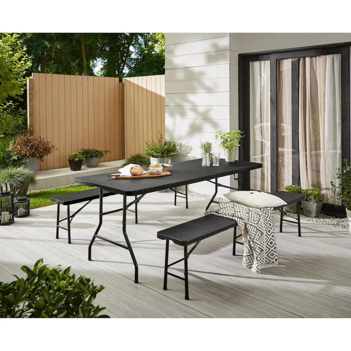 Feiern Sie stilvoll mit diesem gemütlichen Biertisch in edler Rattanoptik! Sie ist im Handumdrehen auf- und abgebaut, platzsparend zusammenklappbar und passt sogar in den Kofferraum. Für den Innen- und Außenbereich geeignet.