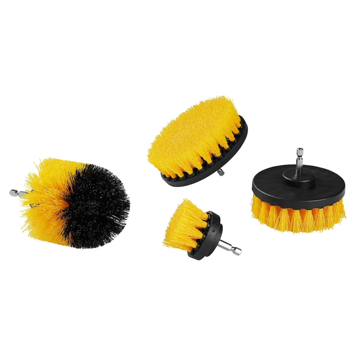 Unverzichtbar für Haushalt, Hobby und Werkstatt: 4 verschiedene Bürstenaufsätze für alle gängigen Bohrmaschinen und Akkuschrauber. Gewählten Aufsatz aufstecken – schon bürsten Sie Fliesen, Felgen, Fahrräder etc. spielend leicht statt mühevoll von Hand. Befreien Sie Bodenflächen, Badewannen u. v. m. von Kalk, Flecken, Eisenrost, Moos oder eingetrocknetem Schmutz, ohne die Oberflächen zu verkratzen.