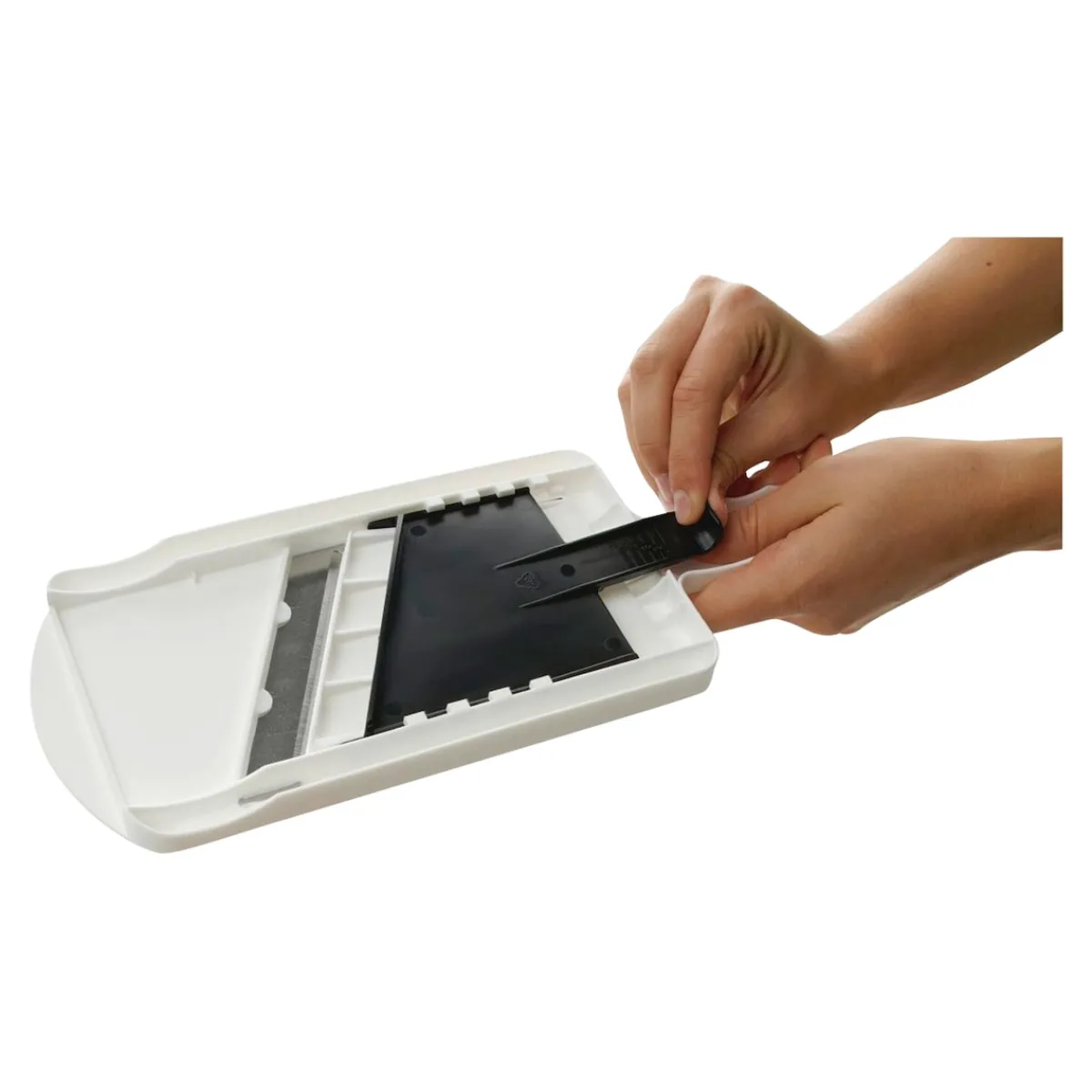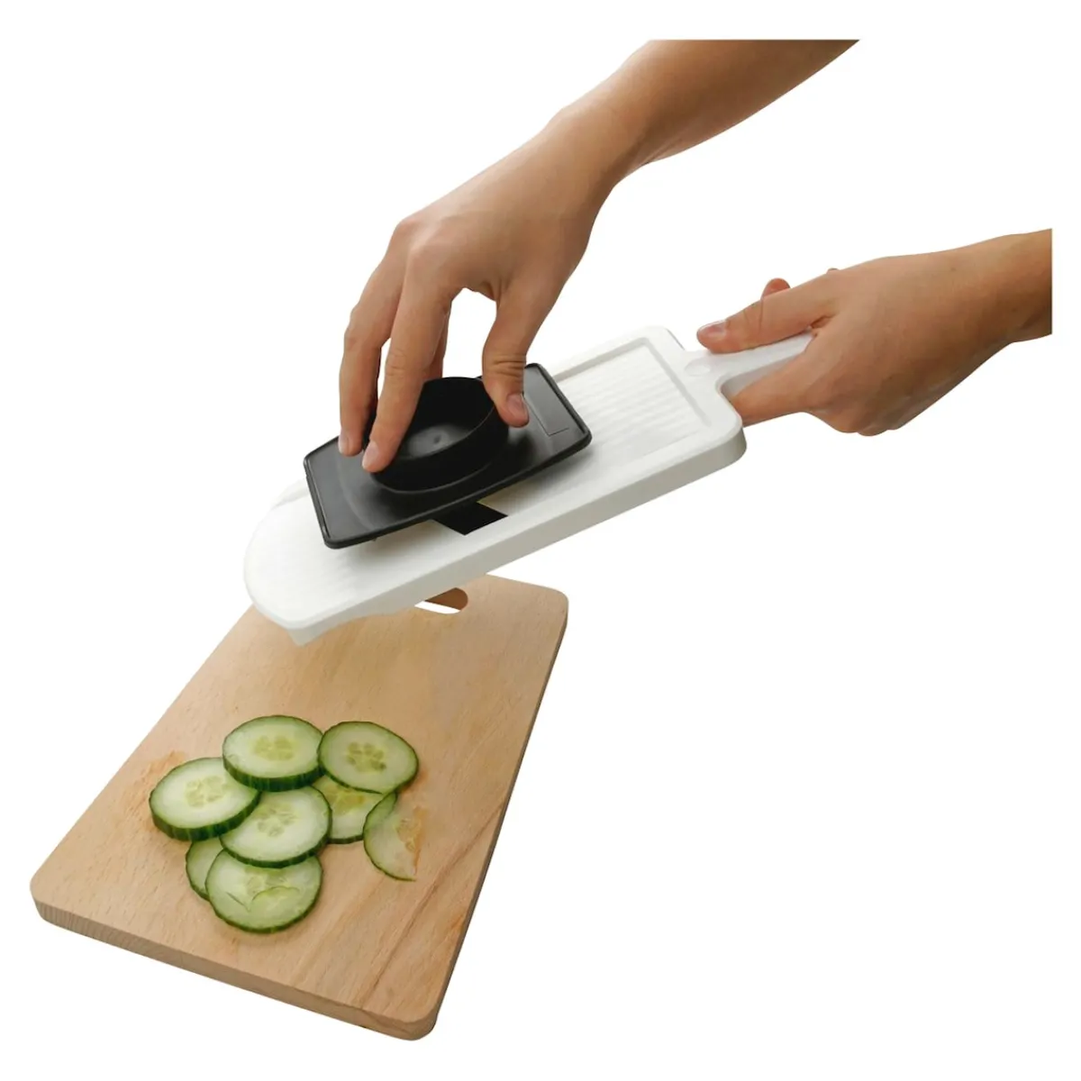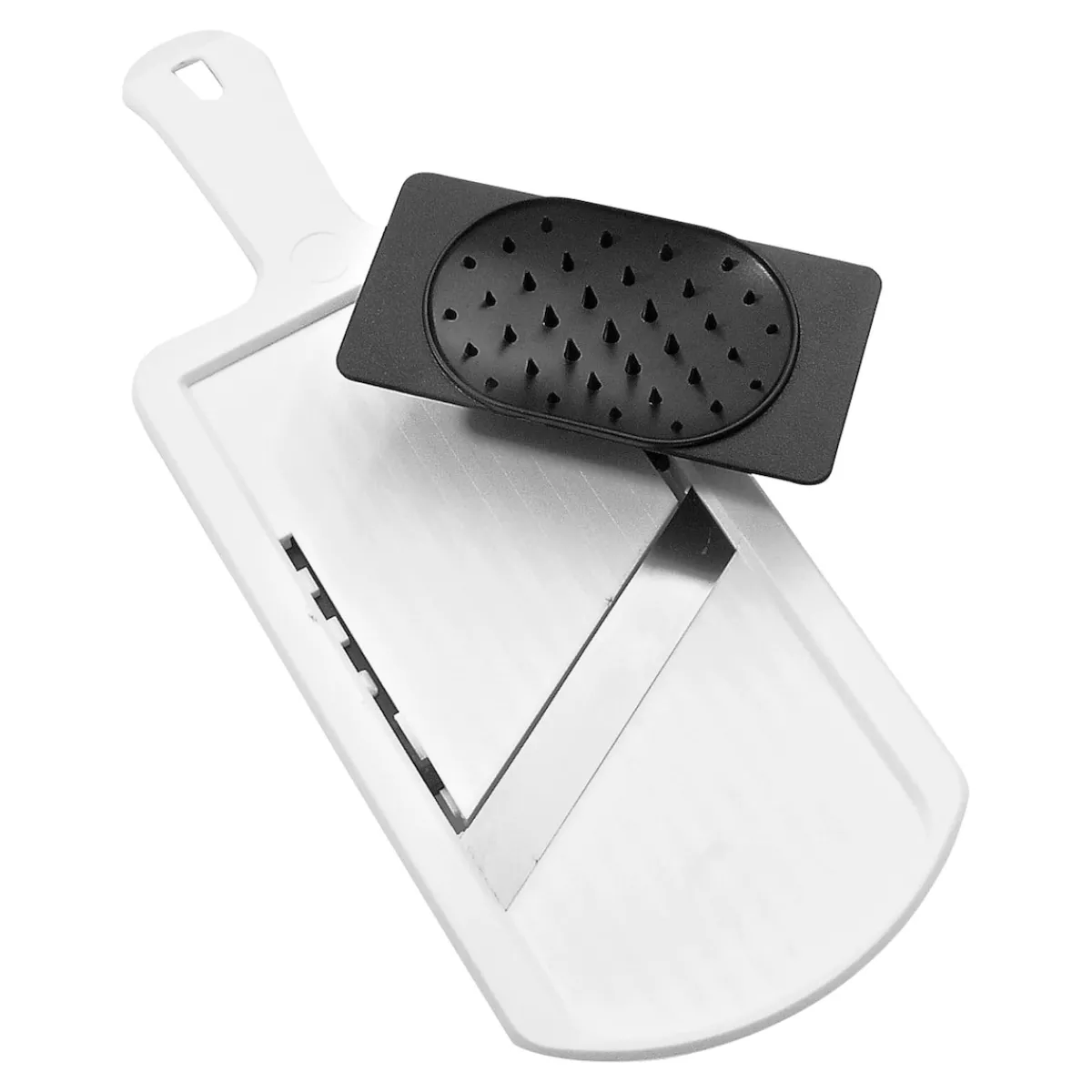 Für ein hohes Maß an Sicherheit sorgt der im Lieferumfang enthaltene Restehalter. Er ermöglicht es Ihnen, kleine Reste aufzuspießen und sicher über die scharfe Klinge des Dick- und Dünnschneiders zu führen. Nach dem Gebrauch können Sie den Küchenhelfer ganz einfach mit der Hand reinigen und ihn in der Schublade verstauen. Wenn Sie möchten, können Sie ihn auch platzsparend an der in den Griff integrierten Aufhängeöse aufhängen. So haben Sie ihn beim nächsten Mal direkt in greifbarer Nähe.