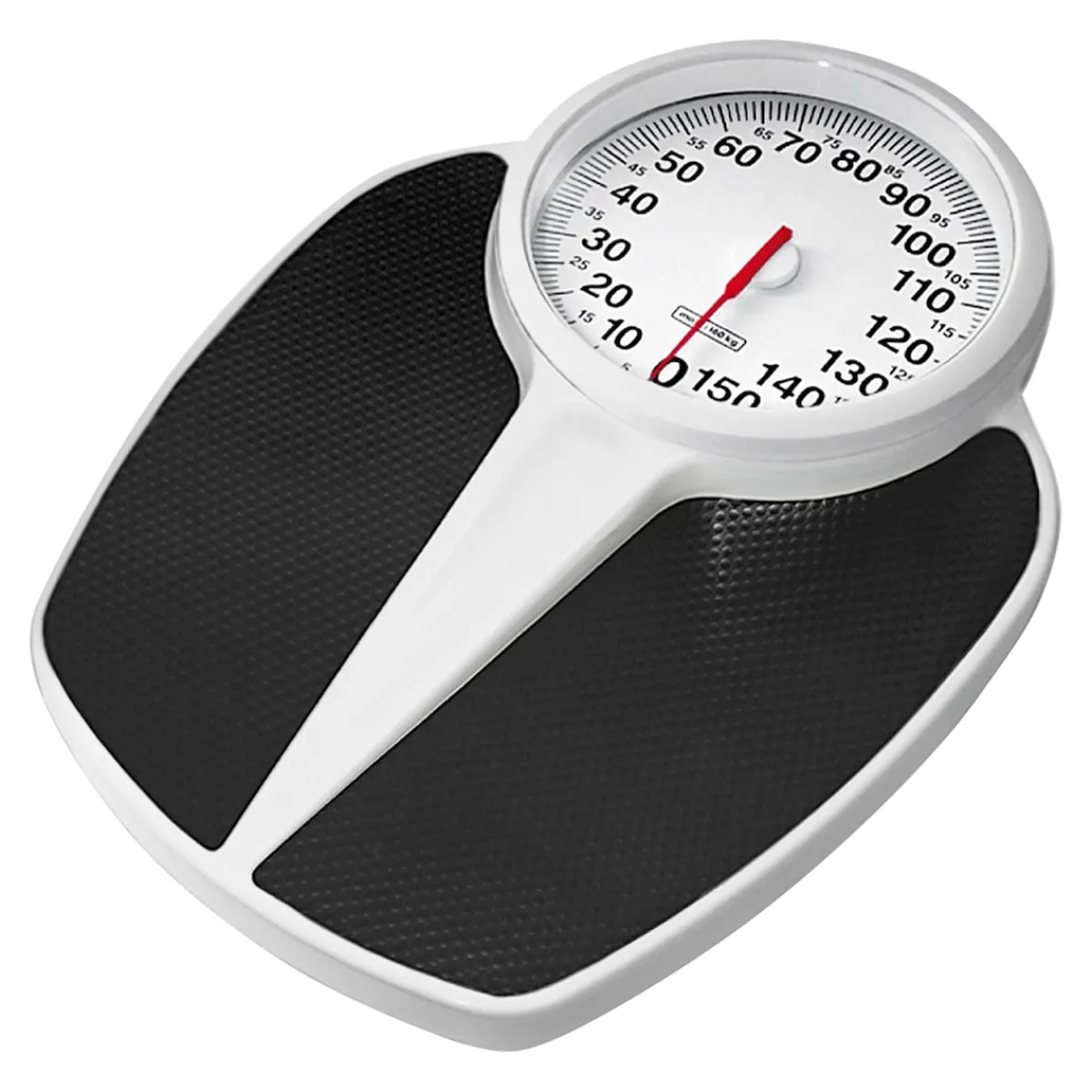 Präzise Mechanik ohne Batterien. Die große Trittfläche aus rutschfestem Kunststoff garantiert Standfestigkeit. Auf der extra großen, gut ablesbaren Skala erkennen Sie sofort Ihr Gewicht. 1 kg-Einteilung. Gehäuse aus Carbon-Stahl, weiß lackiert. 160 kg Tragkraft.