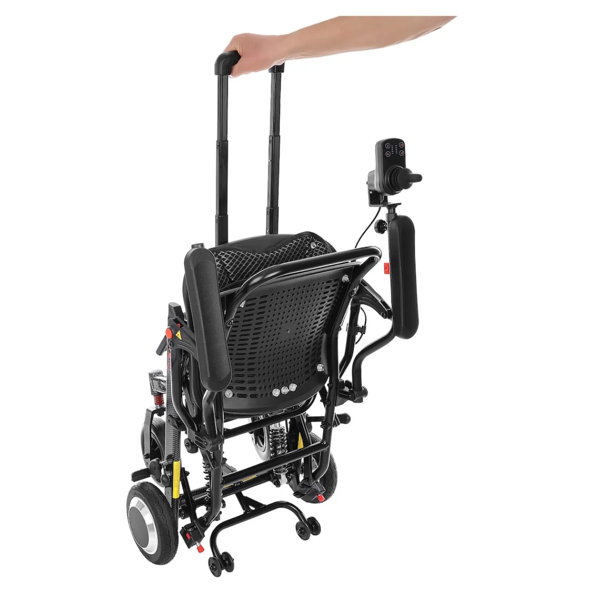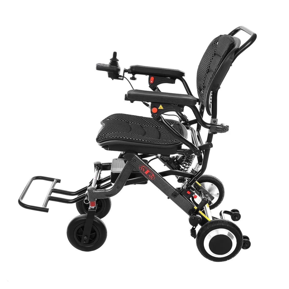 Der ergonomische Sitz und die abnehmbare Rückenlehne machen längeres Sitzen angenehm, während die verstellbaren Fußstützen und klappbaren Armlehnen eine flexible Nutzung im Alltag ermöglichen. Der Rollstuhl lässt sich dank der Lithiumbatterie und einem 180 W Bürstenmotor mühelos steuern – perfekt für Einkäufe, Spaziergänge oder Ausflüge.