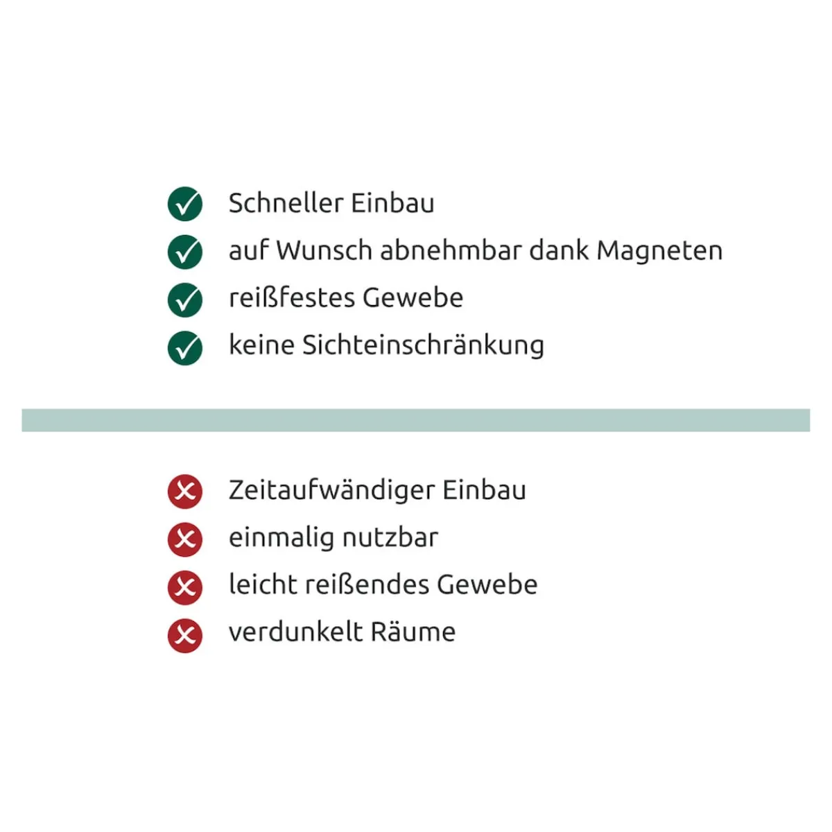 Trotz des zuverlässigen Schutzes vor Mücken und anderen Insekten ist das Moskitonetz angenehm luft- und lichtdurchlässig. Nach der Saison lässt es sich mit wenigen Handgriffen abnehmen, zusammenfalten und platzsparend bis zum nächsten Sommer im Schrank verstauen. Bei einem möglichen Auszug können außerdem die aufgeklebten Metallplatten rückstandsfrei entfernt werden.