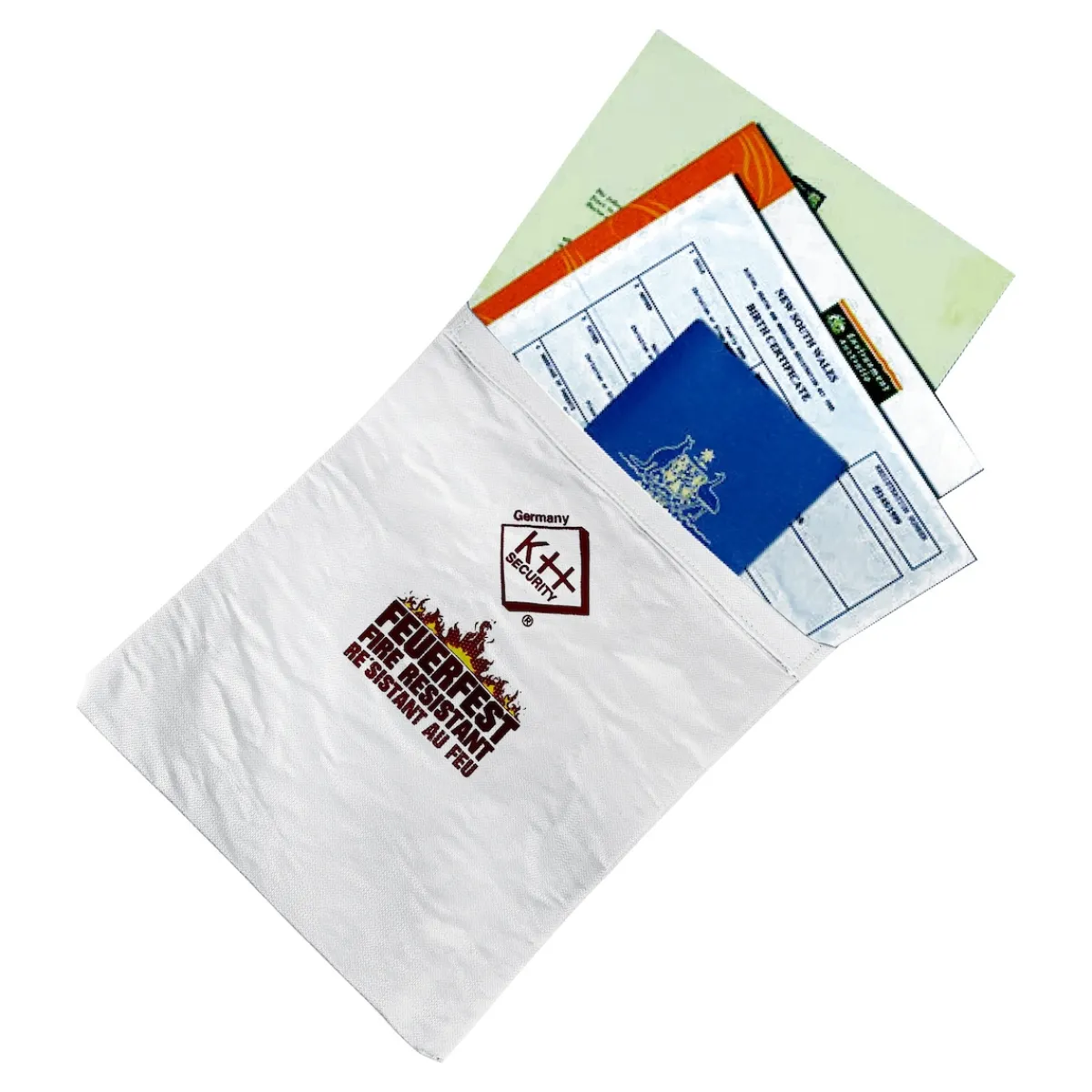 Wichtige Dokumente wie Familienurkunden, Verträge oder Zeugnisse sind unbedingt sicher aufzubewahren, um sie vor Schäden und Zerstörung zu bewahren. Für alle, die in Sachen Dokumentenaufbewahrung auf Nummer Sicher gehen möchten, aber keinen Safe besitzen, ist die feuerfeste Dokumententasche von KH-Security eine gute Alternative. Sie ist hitzebeständig bis 520 °C (für 20 Minuten) und lässt sich ganz einfach mit einem Klettverschluss verschließen.