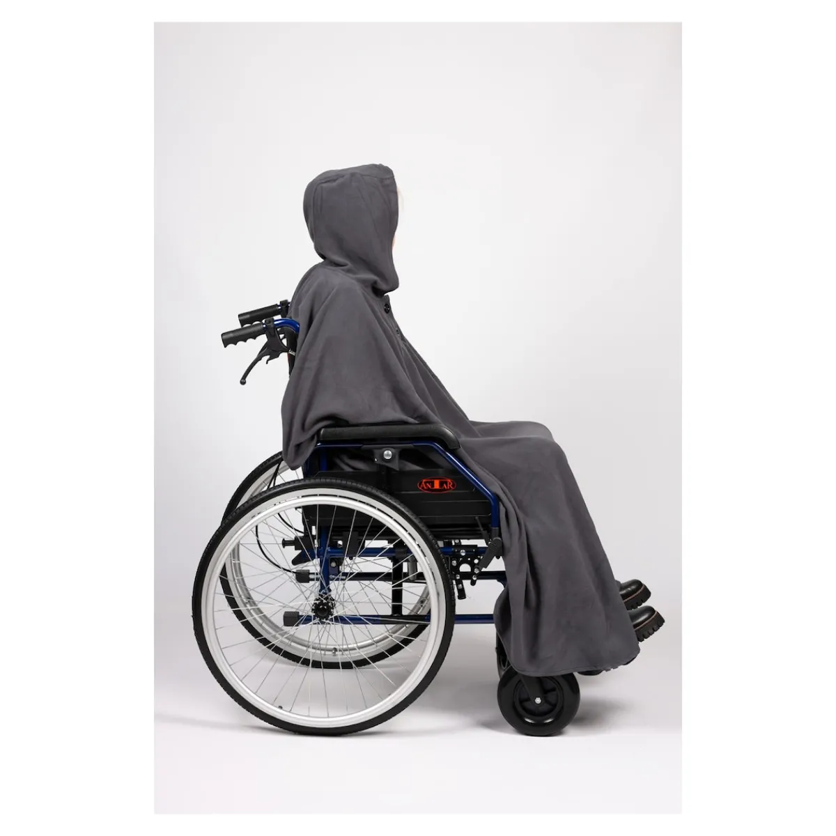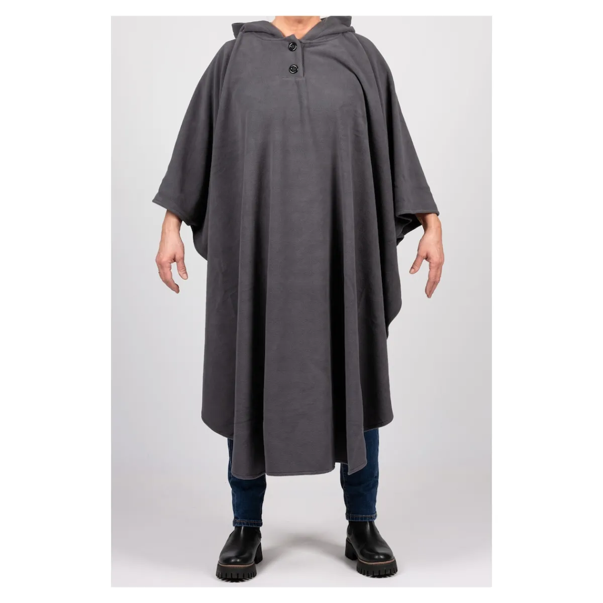 Der Fleece-Rollstuhl-Poncho schützt zuverlässig vor Kälte, Wind und Regen. Die verlängerte Vorderseite hält die Beine warm, während die verkürzte Rückseite für eine optimale Passform im Rollstuhl sorgt. Die Kapuze schützt den Kopf, und der praktische 2-Knopf-Verschluss ermöglicht einfaches An- und Ausziehen. Hergestellt aus hochwertigem, atmungsaktivem Fleece, bietet der Poncho ein angenehmes Tragegefühl und hält gleichzeitig angenehm warm. Zudem ist das Material pflegeleicht und maschinenwaschbar – ideal für den täglichen Gebrauch. Ein praktischer Begleiter für jede Wetterlage!