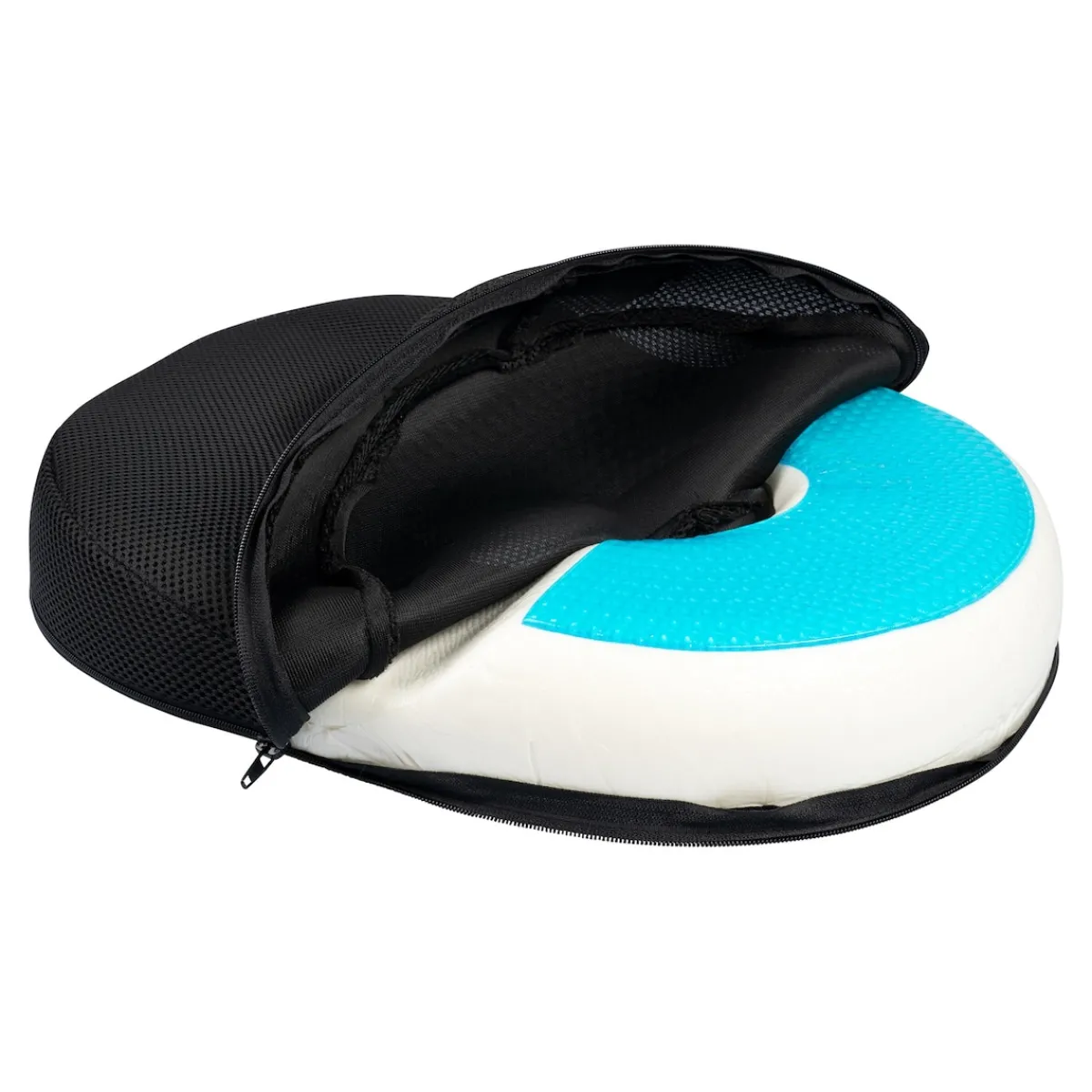 Der Kern aus Memory-Schaum passt sich der Körperkontur an und nimmt auch nach längerem Sitzen seine ursprüngliche Form wieder ein. Kein anderes Material kann sich so perfekt anpassen. Dabei bietet der Memory-Effekt eine vollständige Druckabsorption, die den Körper von Spannungen befreit. Der Viscoschaum ist extrem belastungsfähig und lange haltbar. Auch die innovative Gel-Oberfläche weist außergewöhnliche Charakteristika auf. Besonders bei längerem Sitzen sorgt das Material für eine angenehme Kühlung. Zudem verfügt es über eine hervorragende Punktelastizität bei gleichzeitig hoher Stützkraft. So wird eine ergonomisch und anatomisch korrekte Haltung gewährleistet. Zudem werden Schwingungen und Vibrationen abgedämpft, weshalb der Sitzring im Auto, Flugzeug und Zug seine schmerzlindernde Wirkung voll entfalten kann. Aber auch wenn keine Sitzeinschränkung vorliegt, ist der Gel-Sitzring ideal zur Entlastung von Wirbelsäule, Becken, Steißbein und den Beinen. Besonders bei Vielsitzern wird die Durchblutung gefördert. Der waschbare Bezug lässt sich mit dem Reißverschluss einfach abnehmen. Der robuste Ring hält Belastungen bis 140 Kilogramm aus.