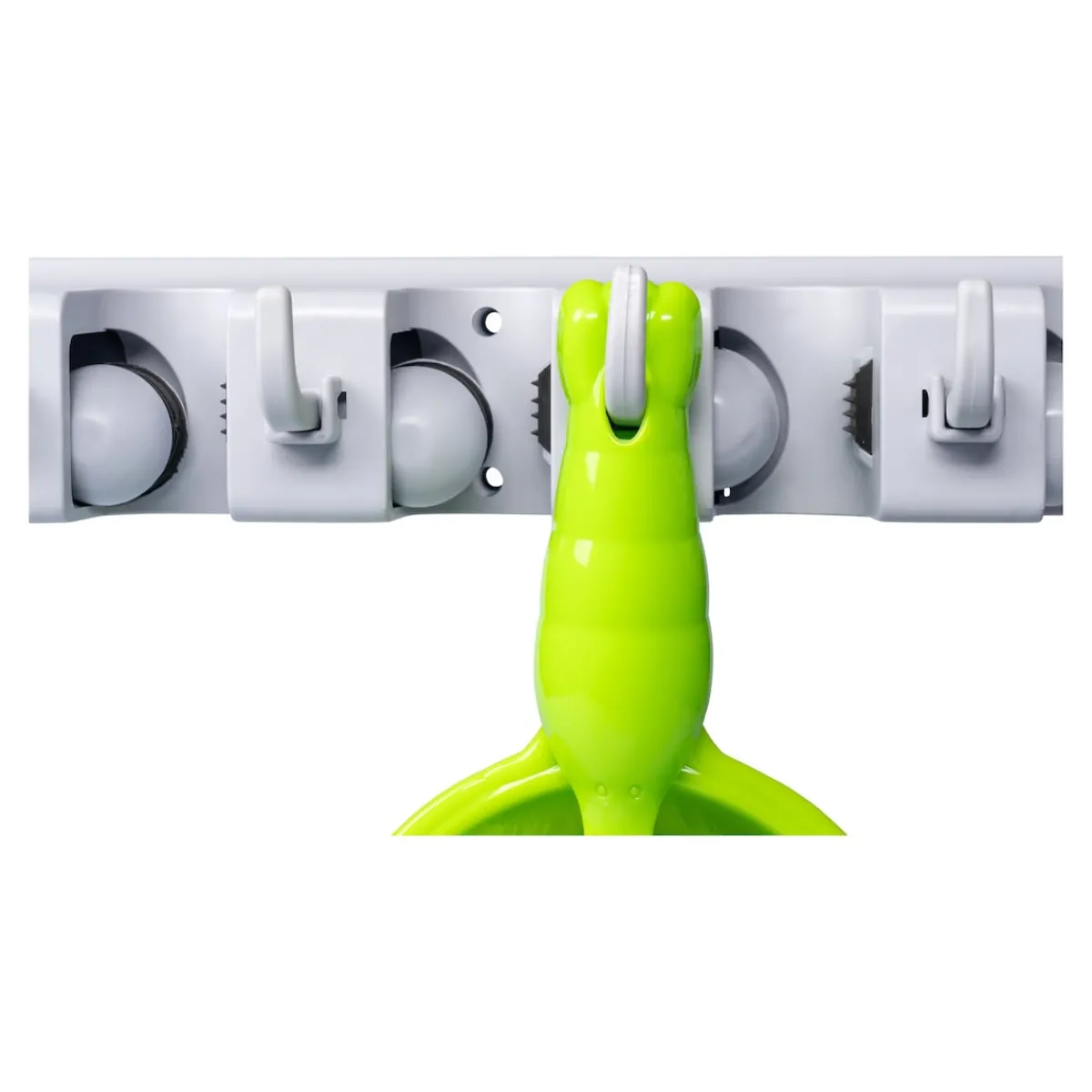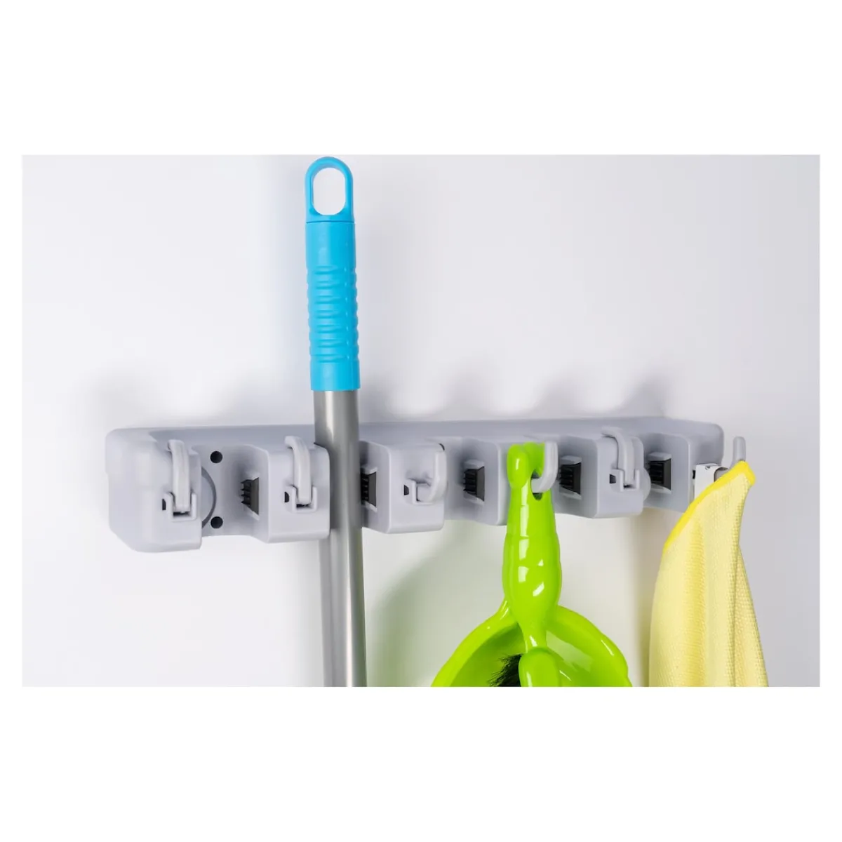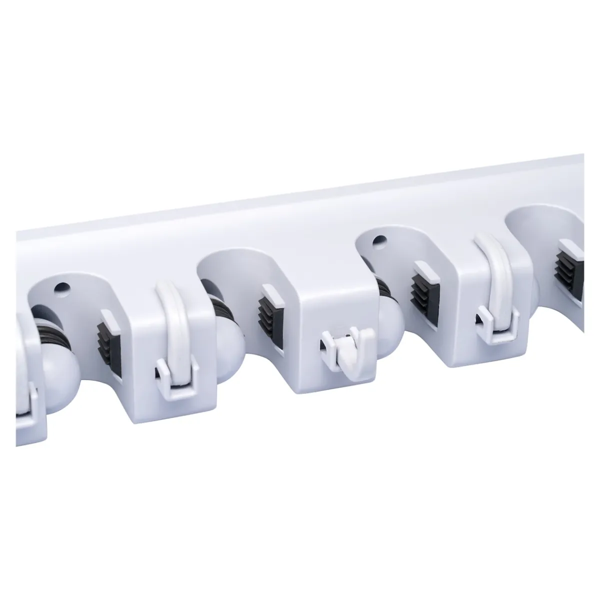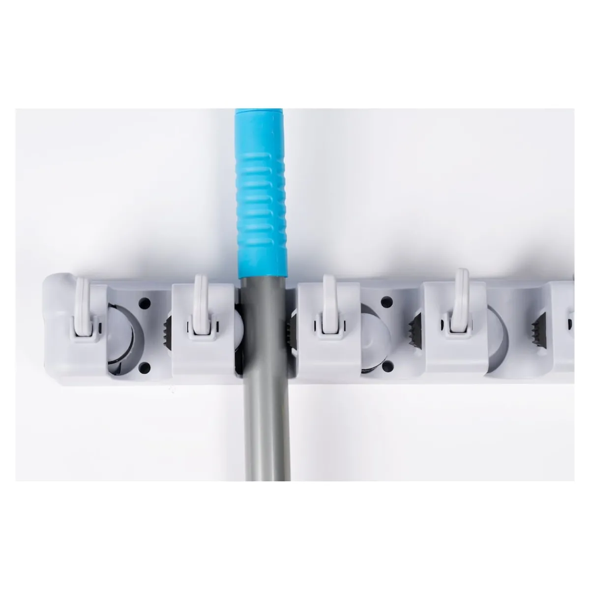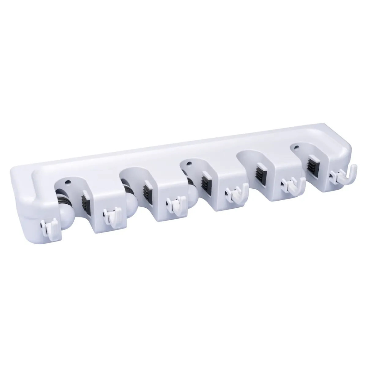 Für Besen, Mopp und viele andere Geräte! Bietet 5 Steckplätze für Geräte aller Art, max. Stiel-Ø 3,2 cm sowie 6 versenkbare Haken für Kleinteile! Den Gerätehalter einfach an die Wand schrauben, schon steht nichts mehr auf dem Boden herum. Mit Montagematerial.