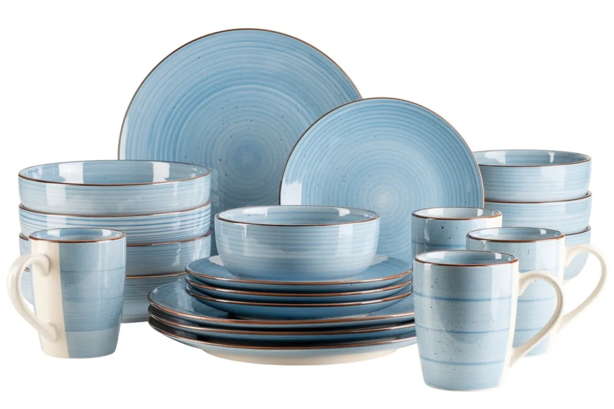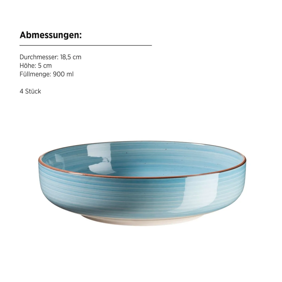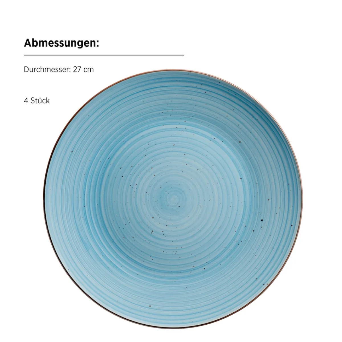 Die Serie „Valmera“ steht für rustikalen Vintage-Look mit modernen Farben und Formen. Das Keramikgeschirr, der Marke Mäser, zaubert im Nu ein fröhliches Ambiente auf Ihren Tisch. Valmera kombiniert kreisförmige, verspielte Linien mit einem farblich abgesetzten Rand und dezenten Punkten für einen charmanten Handmade-Touch. Das robuste Steinzeug Material ist pflegeleicht und geeignet für Spülmaschine und Mikrowelle. Erhältlich in den Farbstellungen Hellblau, Hellgrün und Hellgrau.