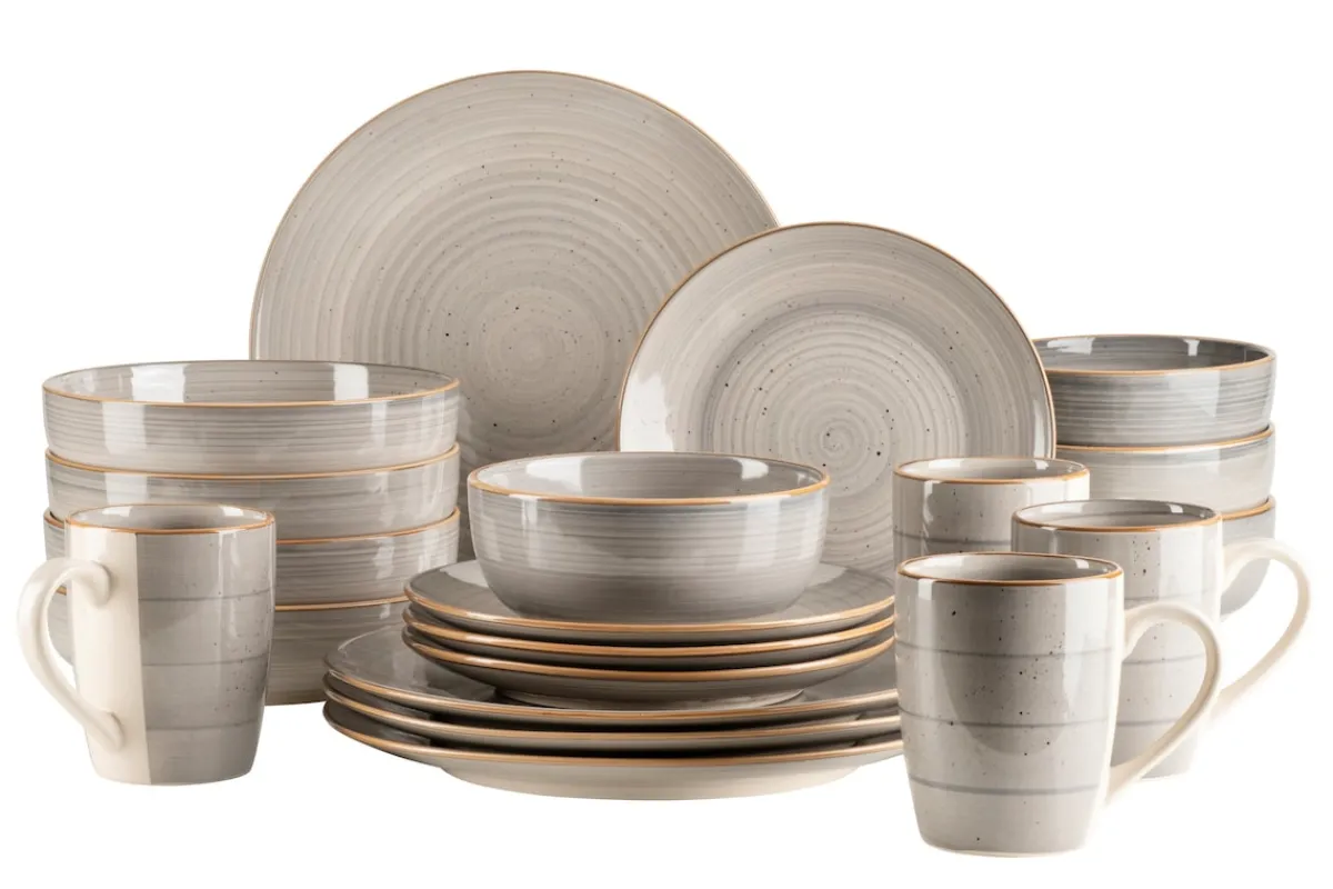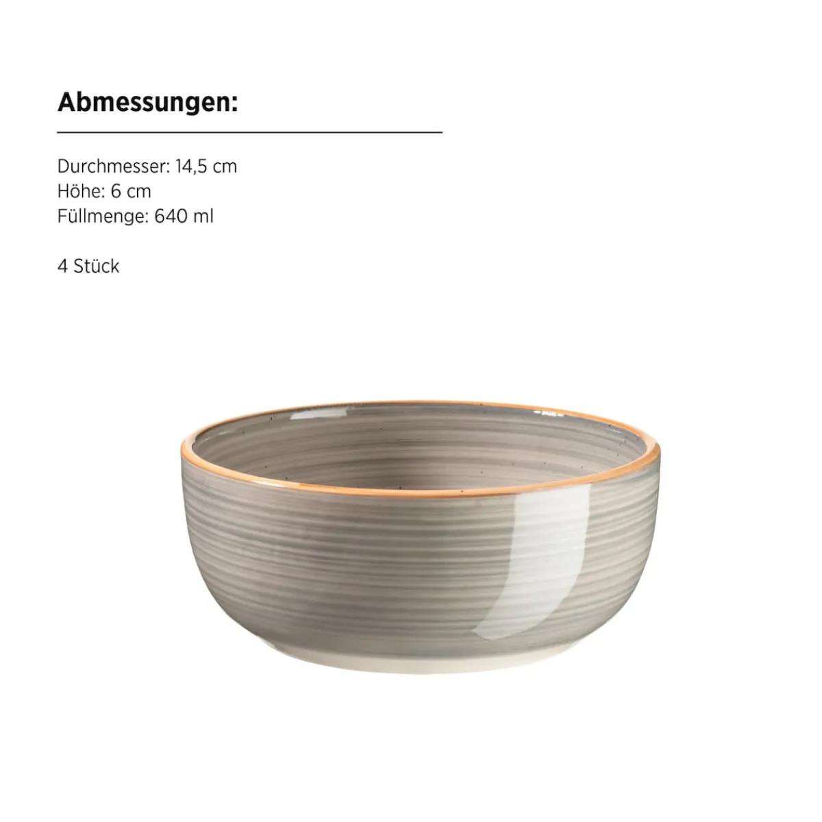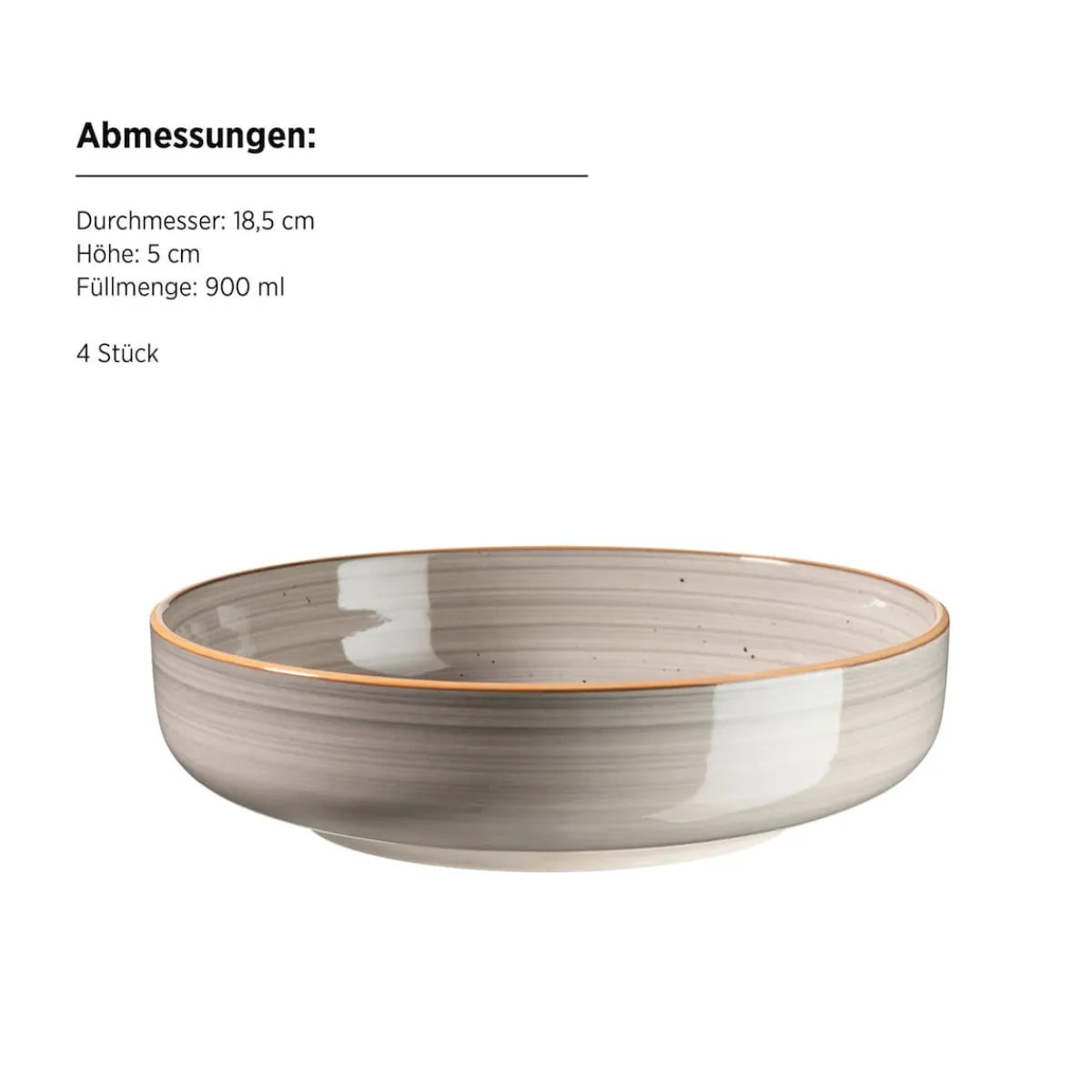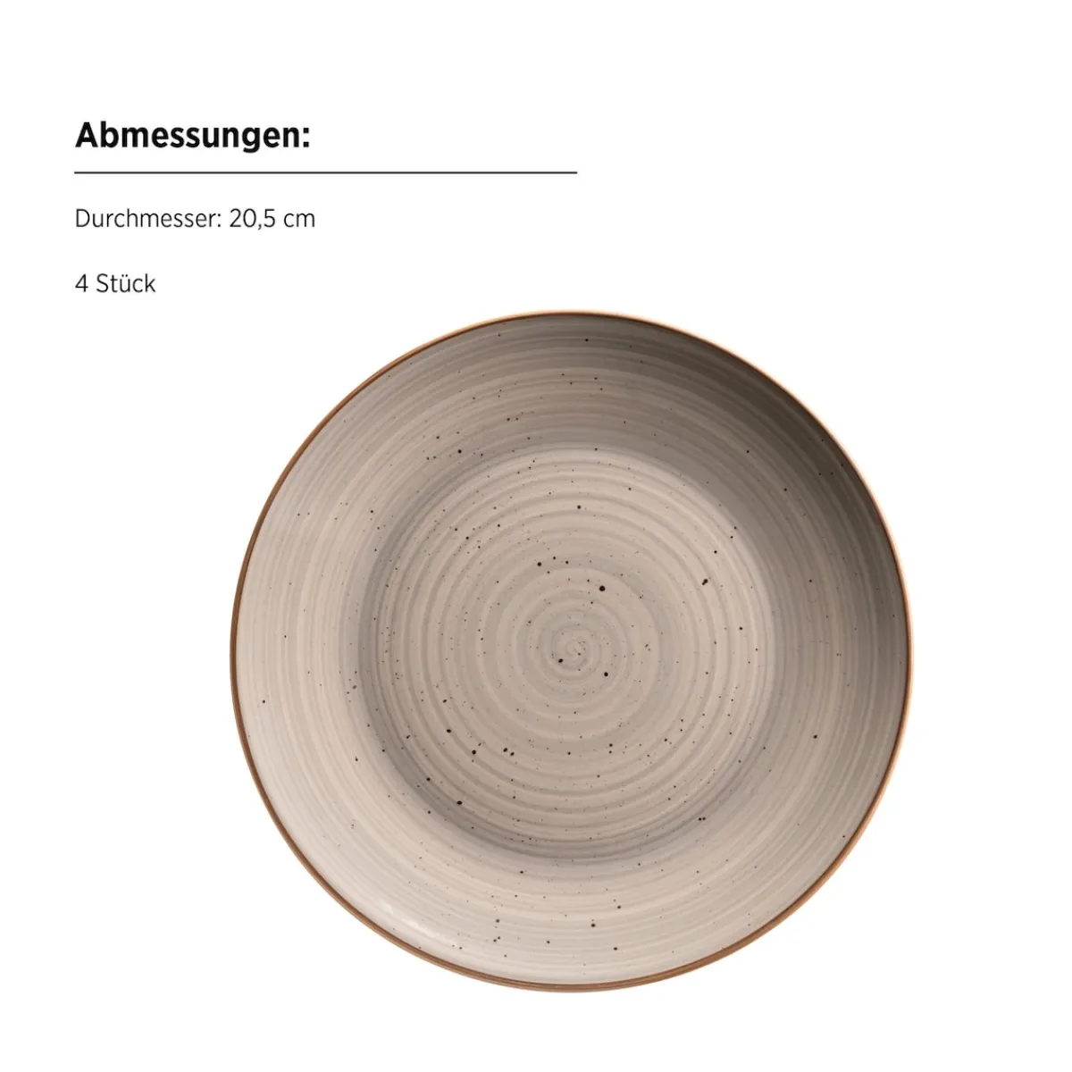 Die Serie „Valmera“ steht für rustikalen Vintage-Look mit modernen Farben und Formen. Das Keramikgeschirr, der Marke Mäser, zaubert im Nu ein fröhliches Ambiente auf Ihren Tisch. Valmera kombiniert kreisförmige, verspielte Linien mit einem farblich abgesetzten Rand und dezenten Punkten für einen charmanten Handmade-Touch. Das robuste Steinzeug Material ist pflegeleicht und geeignet für Spülmaschine und Mikrowelle. Erhältlich in den Farbstellungen Hellblau, Hellgrün und Hellgrau.