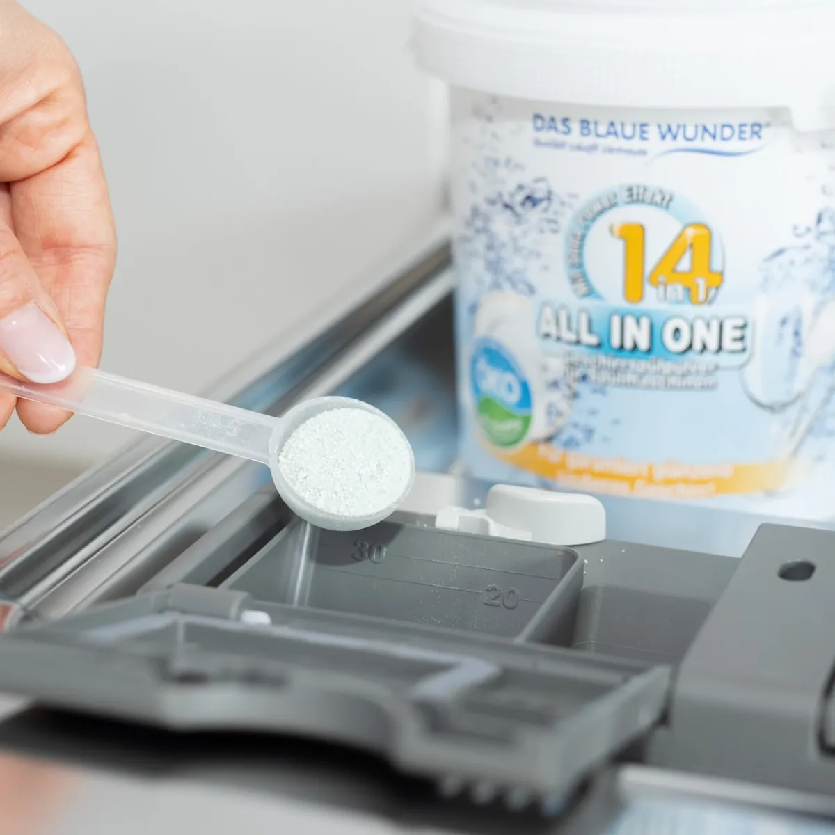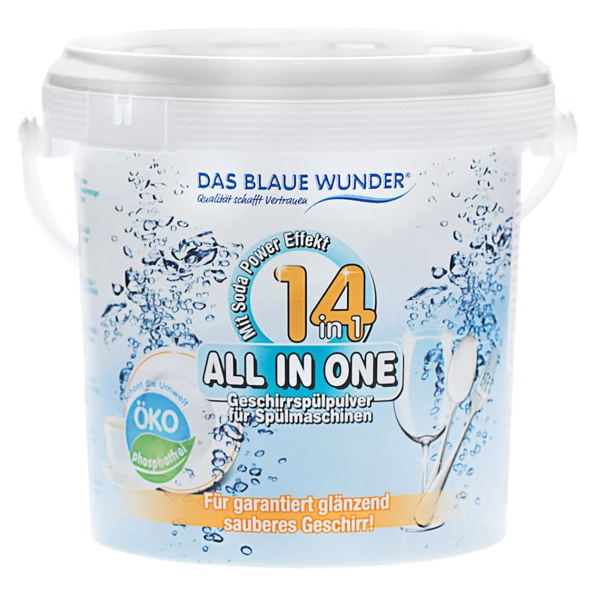 Tauchen Sie ein in eine Welt makelloser Sauberkeit mit unserem All in One Geschirrspülpulver. Dank einer innovativen Rezeptur reinigt dieses Pulver Ihr Geschirr in der Spülmaschine nicht nur gründlich, sondern auch schonend. Mit seinen 14 Funktionen in einem Produkt revolutioniert es die Art und Weise, wie Sie Ihr Geschirr spülen. Nie mehr Kompromisse – nur perfekte Ergebnisse.