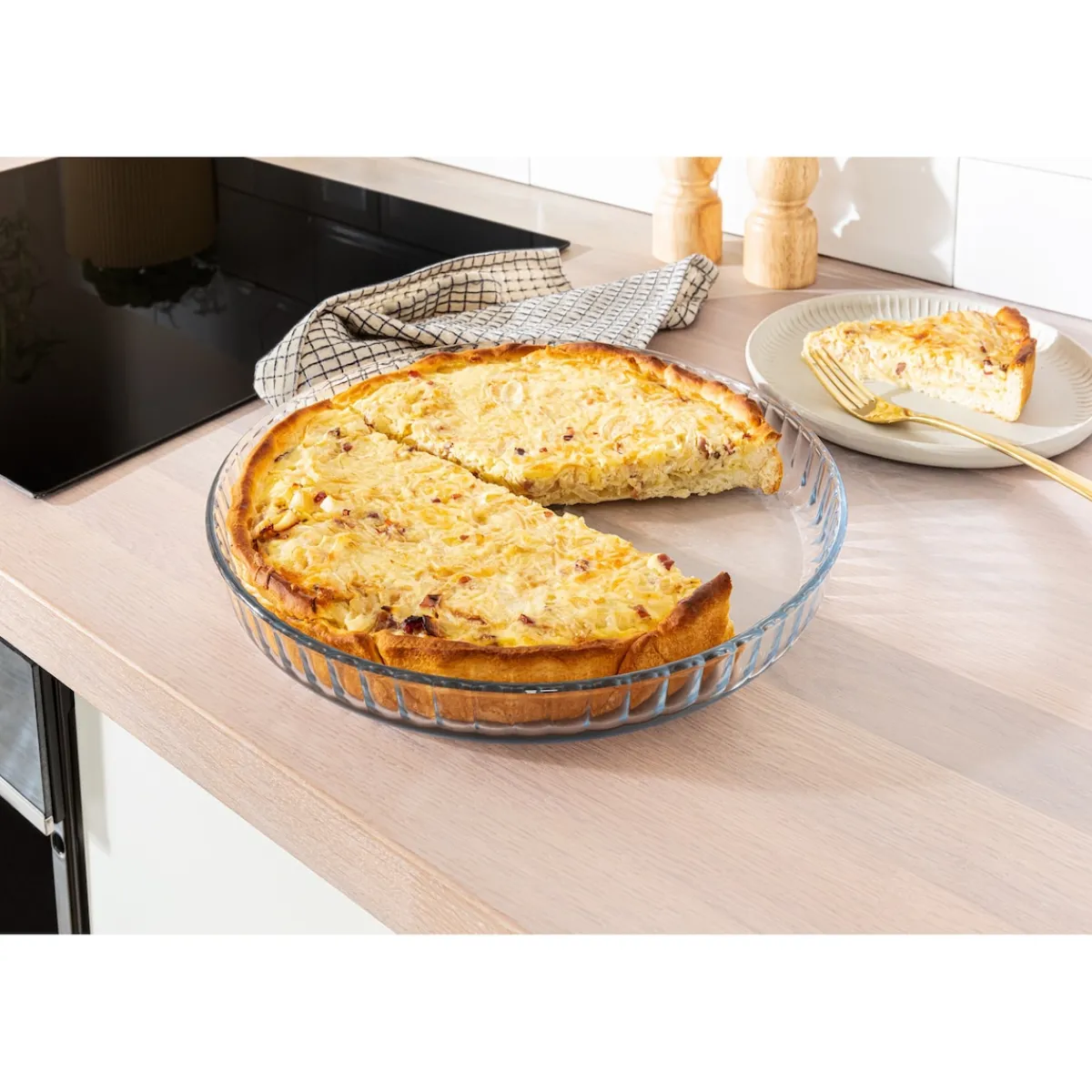 Diese Glas-Backplatte gehört eindeutig in Ihr Küchenrepertoire: Frisch aus dem Ofen, servieren Sie lecker gebackene Quiches, Tartes, Aufläufe und Co. stilecht direkt in der kratzbeständigen Backform.