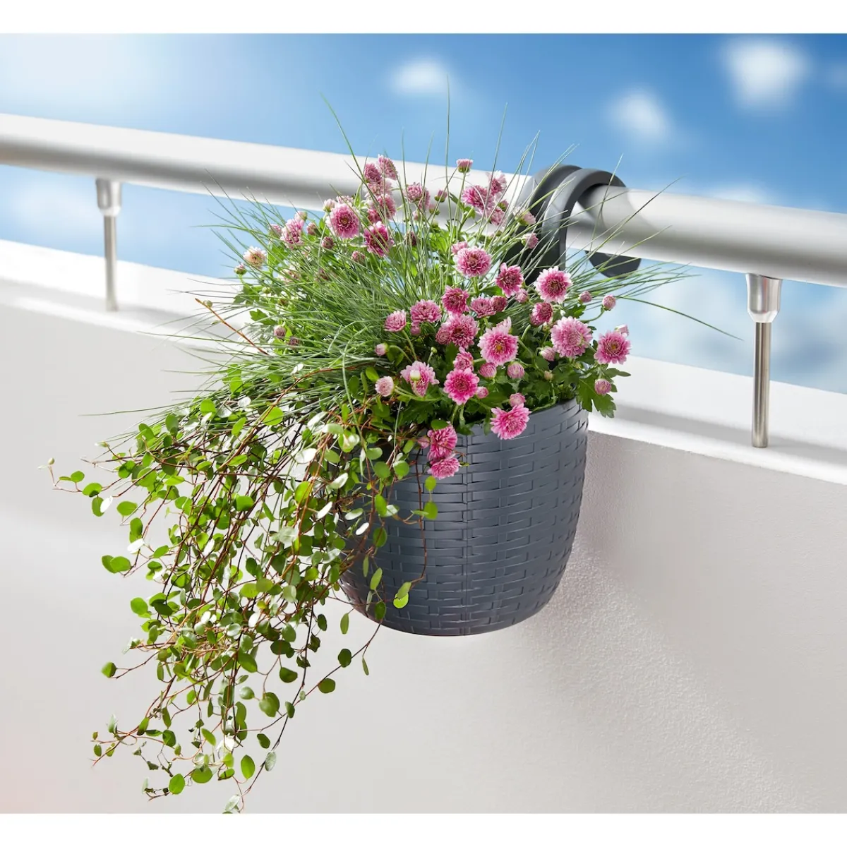 Mit diesem Übertopf setzen Sie im Handumdrehen frische, farbige Akzente auf Ihrem Balkon. Einfach über das Geländer hängen und mit Ihren Lieblingsblumen bepflanzen.